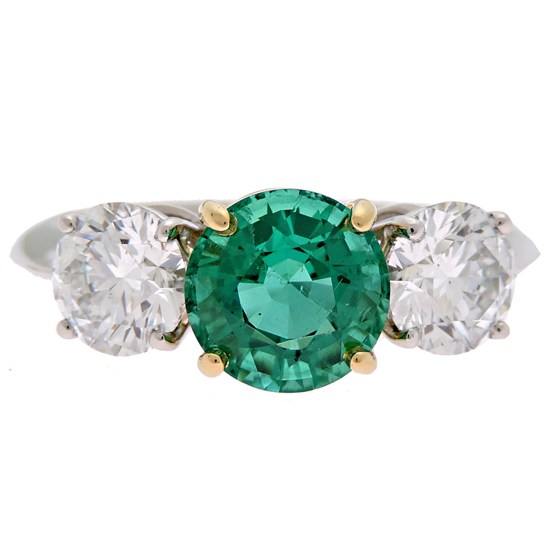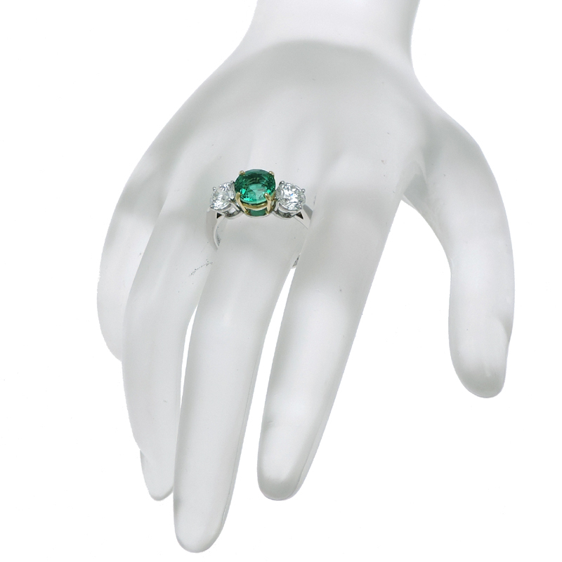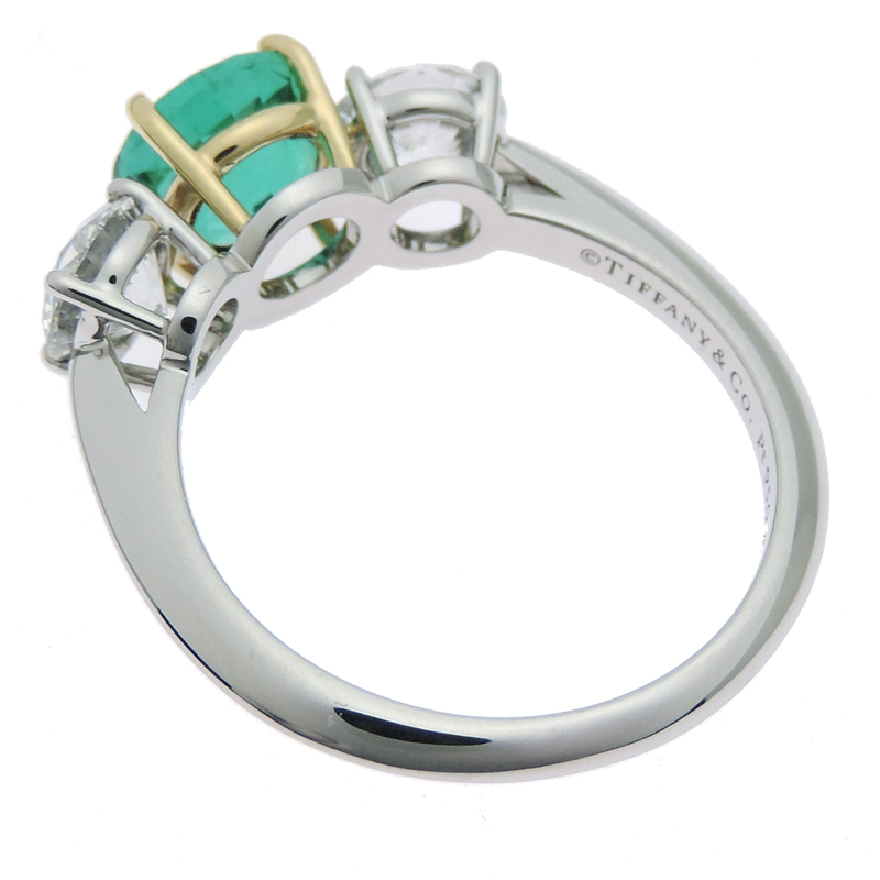 TIFFANY&Co. Tiffany Three-Stone 1.55ct Emerald 0.65ct 0.65ct Diamond Ring