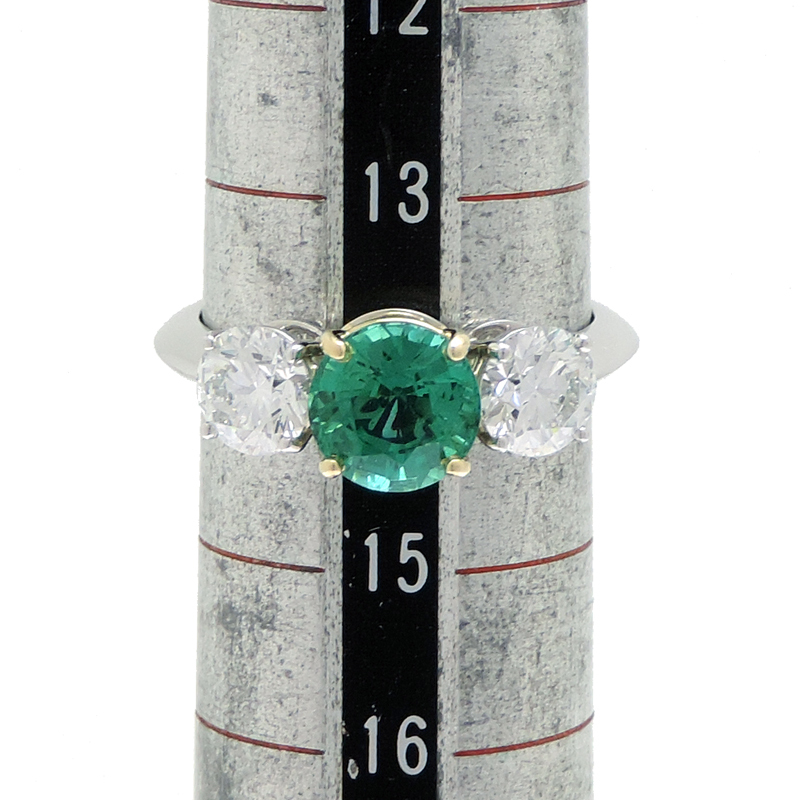Brand Name: TIFFANY&Co. TiffanyProduct Name: Three-Stone 1.55ct Emerald 0.65ct 0.65ct Diamond Ring, Pt950 Platinum, Size 14, GreenSize: Size 14Maximum Ring Width: Approx. 7mmInner Ring Diameter: Approx. 17.3mm* Actual Measurements■ (Size Chart Here)Resizing not possible.Material: Pt950 Platinum, 750 Yellow GoldColor: Green, Silver, GoldAccessories: Storage bag, inner box, copy of repair certificate, appraisal certificateReference Price: ¥8,525,000Condition: Used: AEmerald: Minor scratchesMetal: Fine scratchesSince it has been refinished, there are no noticeable scratches, and it is in good condition.Inner Box: Slightly scuffedWeight: 5.5gStone Type: Emerald 1.55ct / Diamond 0.65ct / Diamond 0.65ctRefinished at Tiffany & Co. in January 2026Clarity: VS1Color: FPolishing Condition: EXCELLENTSymmetry: EXCELLENTFluorescence: NONEDiamond Shape: Round Brilliant CutOverall Cut Evaluation: EXCELLENTThe actual color of the product may differ depending on the device and display you are using.