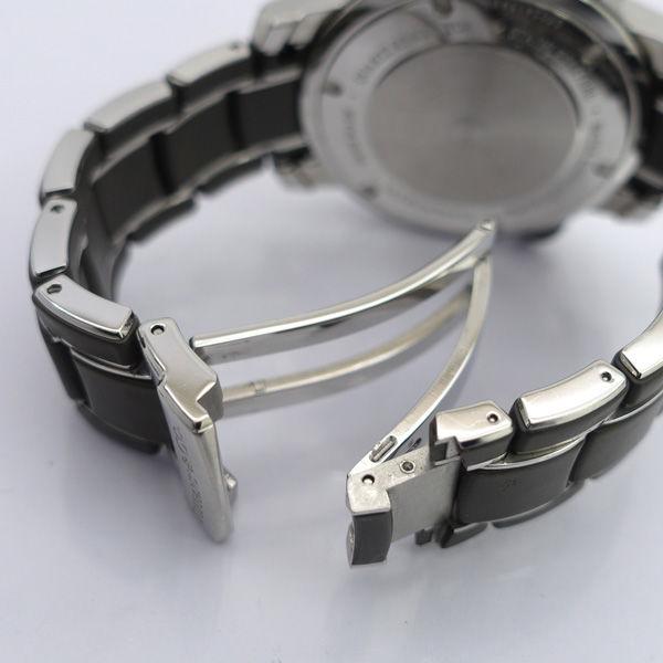 ・メーカー :TIFFANY&Co. / ティファニー・製品型番 :T-57・製造番号 :050241591・サイズ :ベルト内周 (約cm):14.5,フェイス横 (約cm):4.1,フェイス縦 (約cm):5.2,総重量 (約g):128.8,・色(柄)の系統:シルバー グレー・デザイン :メンズ腕時計 クロノグラフ クォーツ・素材 :SS / ステンレススチール・付属品 :コマ1個(ピン無し)-------------商品状態-------------・ランク :B・詳細 :全体的に薄キズが見られ、一般的な使用感がございます。※コマ1個ありますが、ピンが欠品しています。