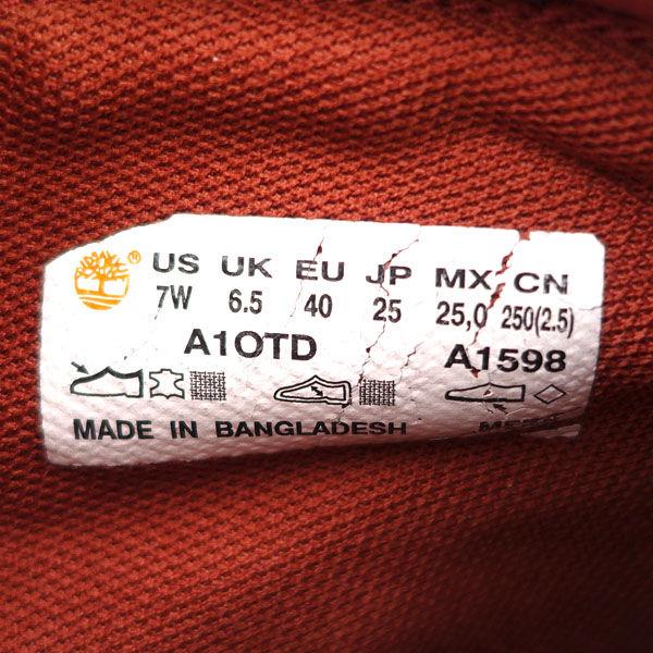 ・メーカー :Timberland / ティンバーランド・製品型番 :A1598・サイズ :表記サイズ:25cm,アウトソール (約cm):29,甲の横幅 (約cm):10,ヒール/ソールの高さ (約cm):3,全高 (約cm):18,重量(片足) (約g):545,・色(柄)の系統:ワインレッド・デザイン :(メンズ)ブーツ (メンズ)25.0cm
