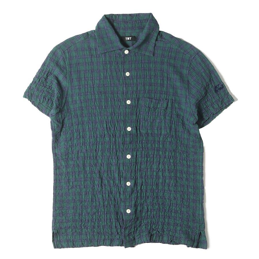 TMT Shirt, Green and Navy, Size: L | 23SS Shirring Check Short Sleeve Shirt (SHEARING CHECK SHORT SLEEVE SHIRTS) | Men's Casual Shirt, Pre-owned, Excellent Condition, K4618
