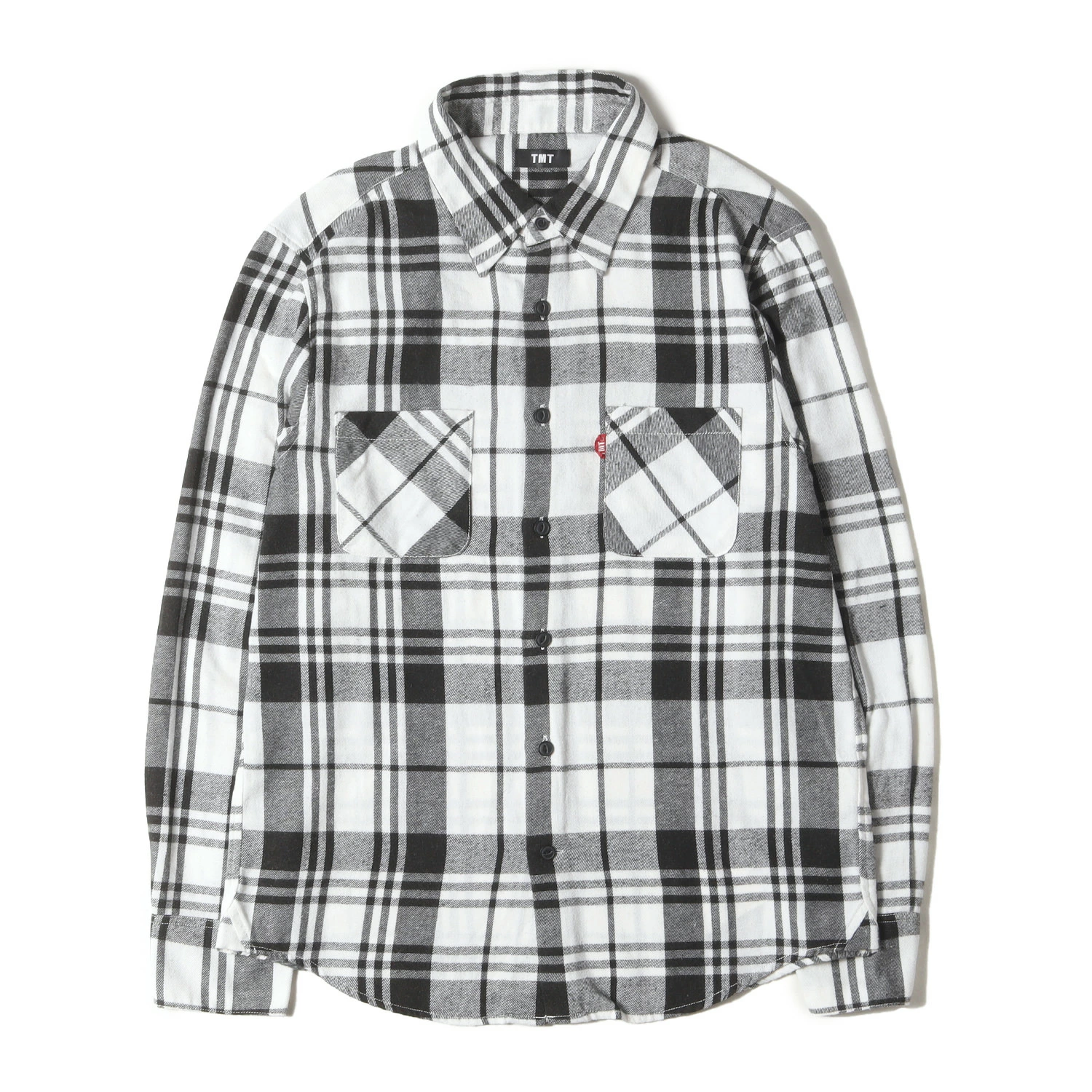 TMT Shirt, Black and White, Size: L | 2023AW Check Flannel Shirt (Wool Plaid Shirt) | Men's Casual Long Sleeve Shirt (Pre-owned) [K4614]