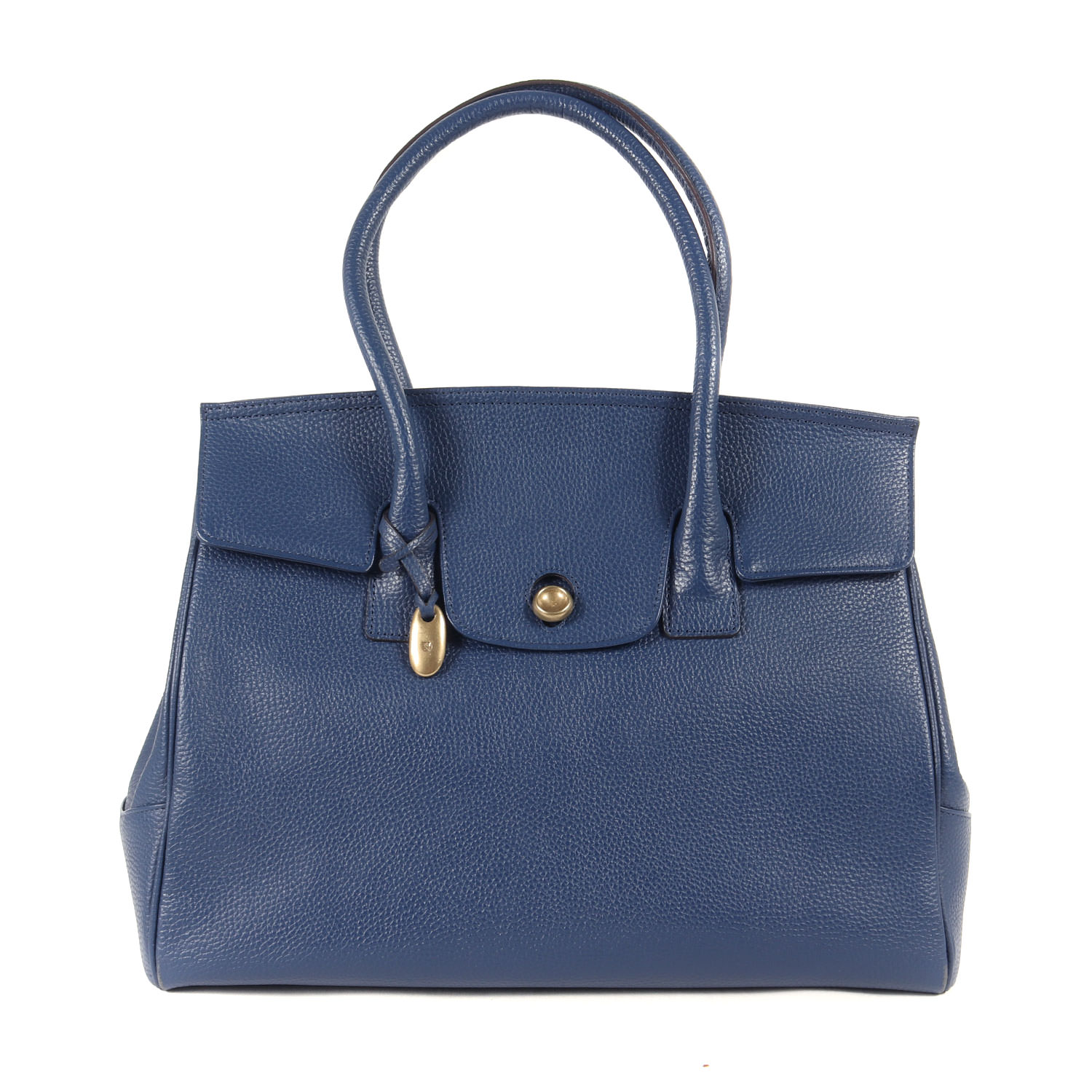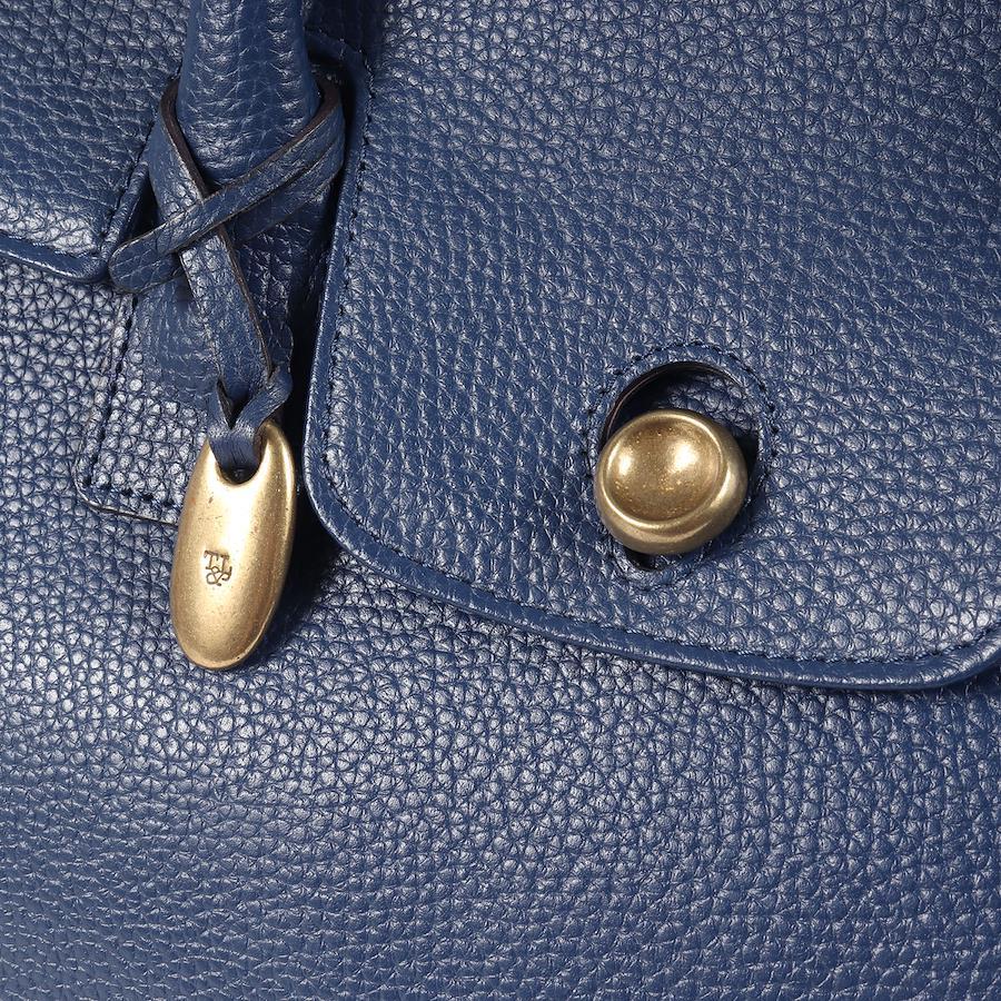 - しっかりとした堅牢なグレインレザーを使用し、ブランドオリジナルのブラス製ルーフボタンが配されたトートバッグです。