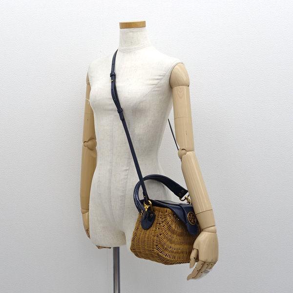 ・メーカー :TORY BURCH / トリーバーチ・サイズ :横幅(W) (約cm):22,高さ(H) (約cm):16,奥行(D) (約cm):17,持ち手 (約cm):43,ショルダー (約cm):127-140,総重量 (約g):670,オープンポケット(内):1,・色(柄)の系統:ネイビー ブラウン・デザイン :かごバッグ・付属品 :なし-------------商品状態-------------・ランク :A・詳細 :スレ、若干の変色等、一般的な使用感があります。