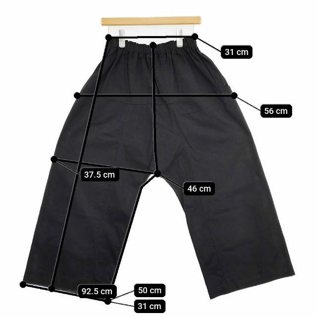 | 仕様 | フロント: なし ポケット:あり 透け感: なし 裾: シングルステッチ ウエスト調整: ゴム(紐あり) 裏地: なし |