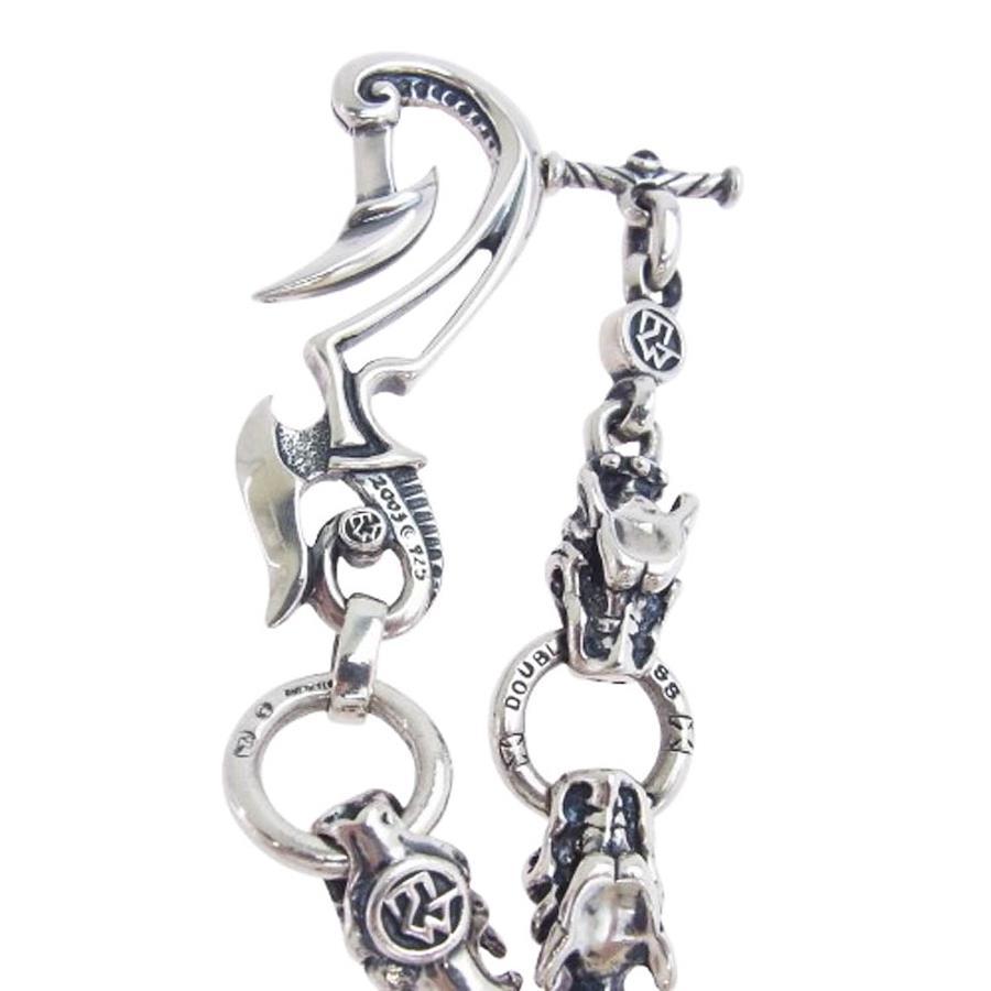 シルバー系【モデル】ギャランティカード付属 THUNDER HOOK WITH 3 GARGOYLE DC RING AND MEAT LINKS WALLET CHAIN WITH T-BAR CZ サンダーフック ミート 3ガーゴイル ウォレットチェーン
