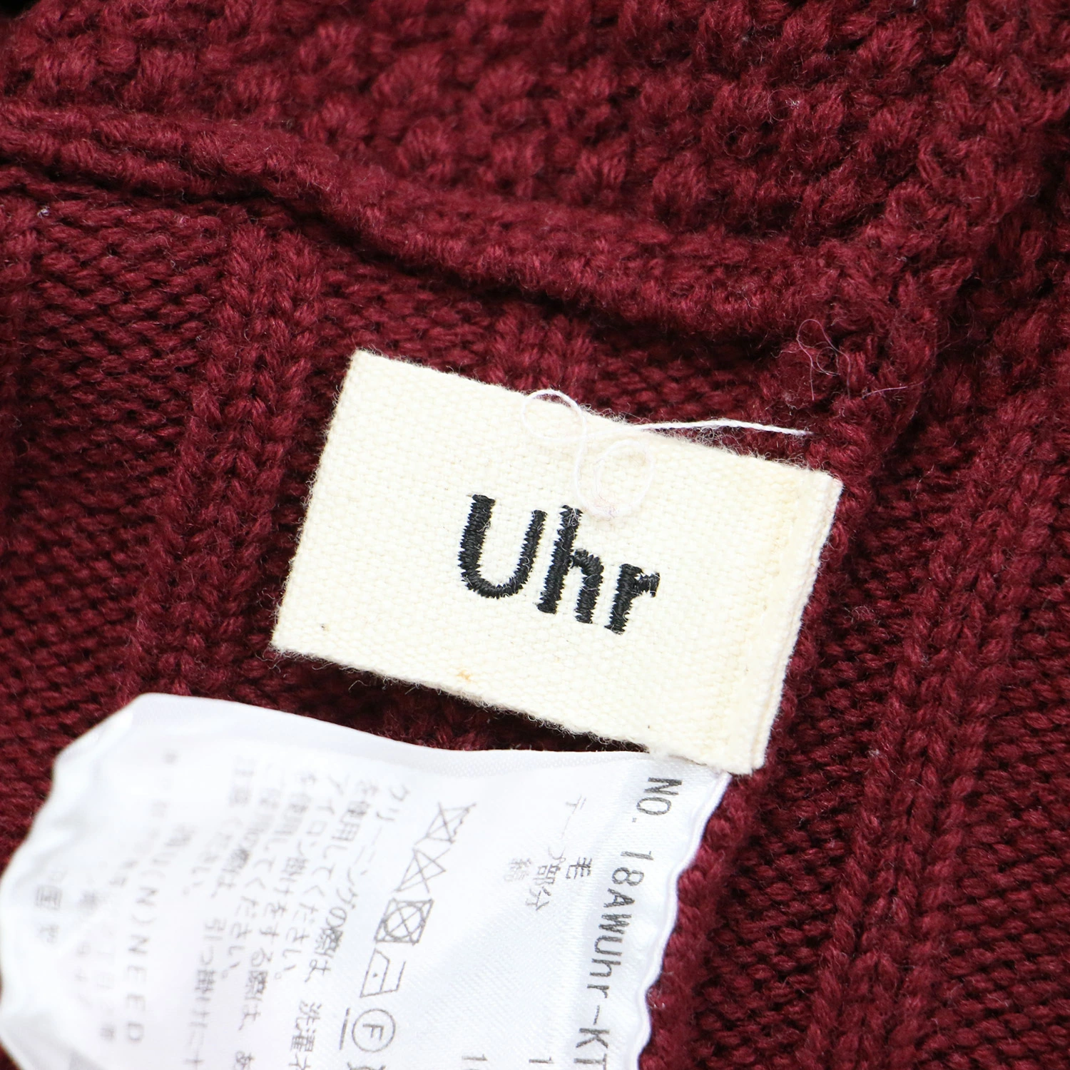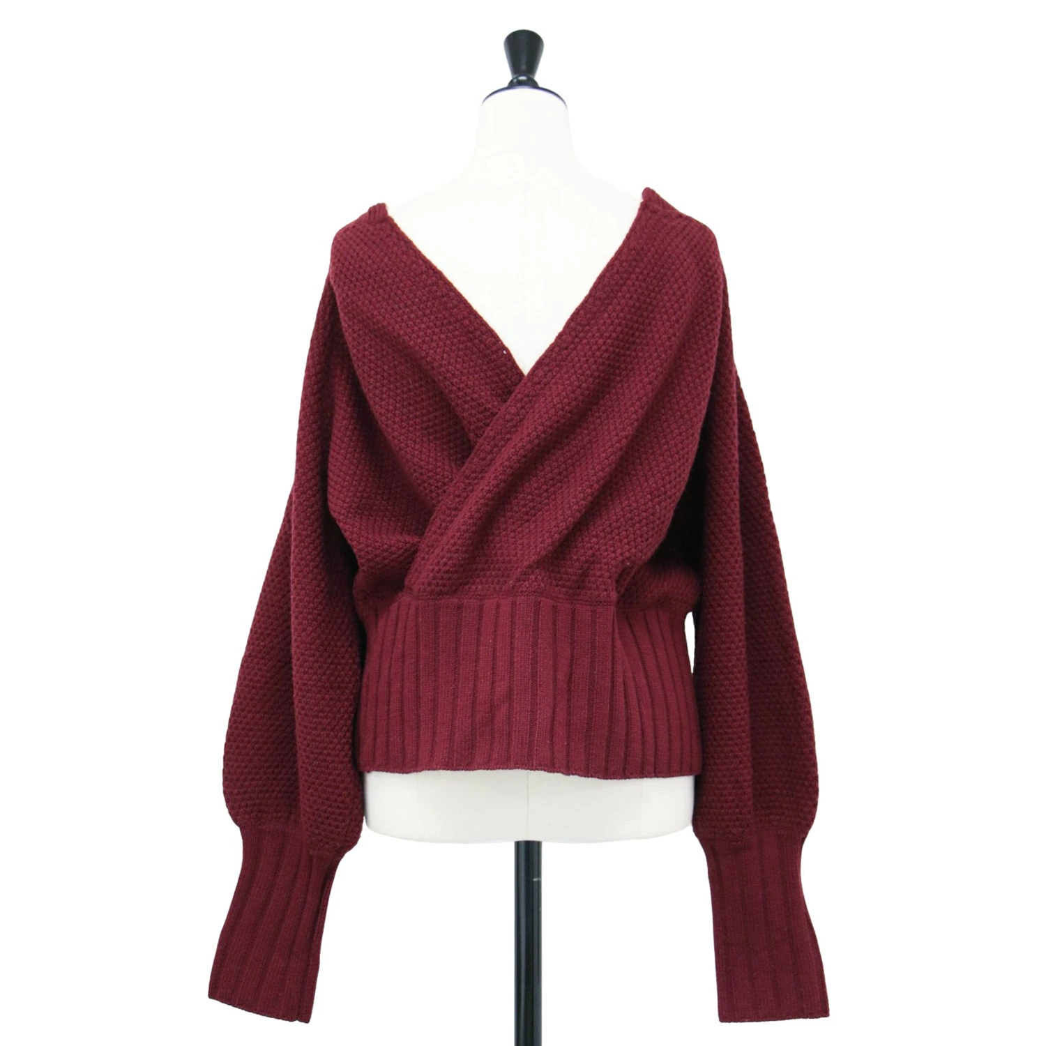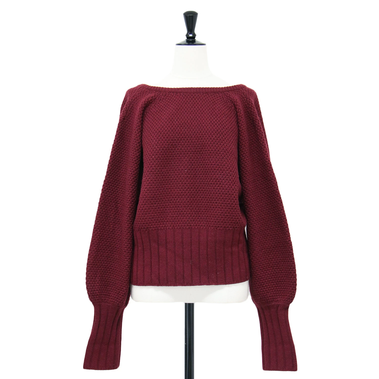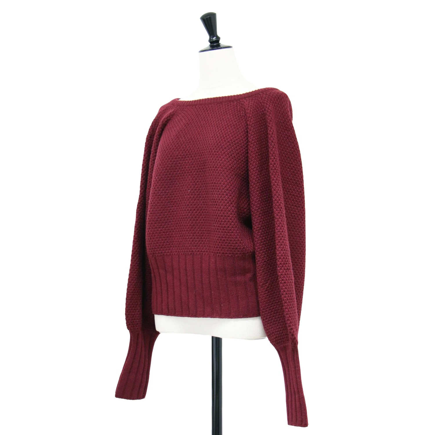 Uhr Bordeaux Knit, Size: Free | Volume Sleeve Pullover Knit | Long Sleeve Crew Neck Sweater, Front or Back, 2-Way Wool | Women's Sweater | Pre-owned | K4616