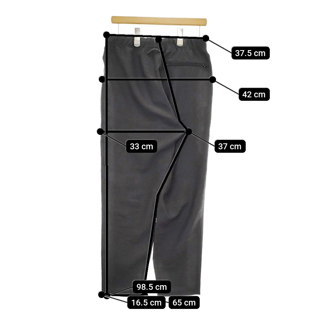 | 実寸サイズ | 総丈:約98.5cm ウエスト:約37.5cm ウエスト最長:約47cm 股上:約37cm 股下:約65cm ヒップ:約42cm ワタリ幅:約33cm 裾幅:約16.5cm ※記載以外のサイズが合わないことを理由とした返品はできませんので、 記載部分以外で実寸サイズの気になる箇所があれば必ず購入前にご質問ください。 |