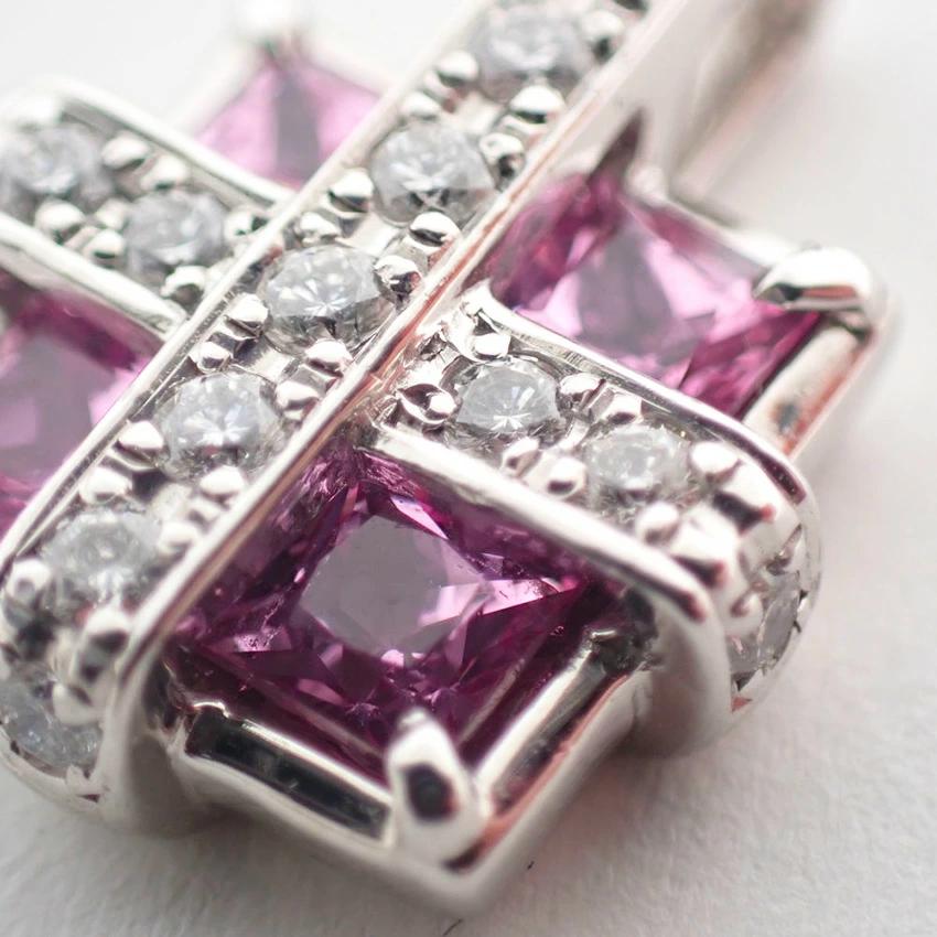 Product DetailsProduct Rank: AMaterial: 750WG (18K White Gold)Weight: Approx. 2.9gPink Sapphire: 0.73ctDiamond: 0.20ctTotal Length: Approx. 15.2mm (including bail) x Approx. 11.4mmBail Inner Diameter: 3.1mmProduct Details