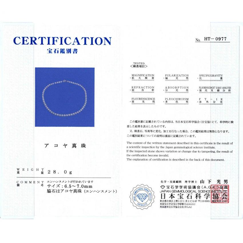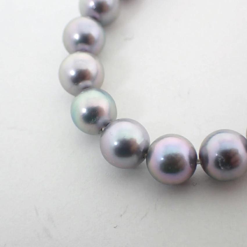 Product DetailsProduct Rank: AMaterial: SilverWeight: Approx. 27.9gTotal Length: Approx. 43cmPearl Diameter: Approx. 6.5mm-7mmComes with a Certificate of Authenticity from the Japan Gemological AssociationProduct DetailsThis necklace features a lustrous gray Akoya pearl with purple and green hues.The thread is loose.It has been polished to a new condition.Product Rank: [N] New or equivalent, in excellent condition with no defects. [S] Almost perfect condition with no defects. [A] Light signs of use. [B] Signs of use. [C] Very heavy signs of use, obvious damage, or repairs required. ______________________________________Condition: Used