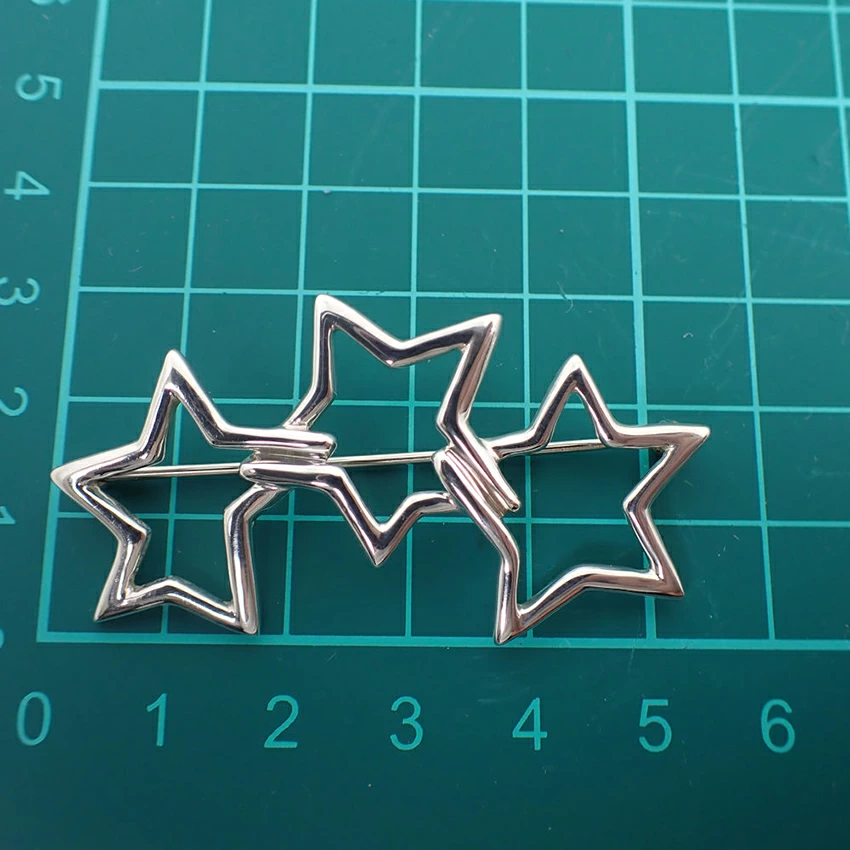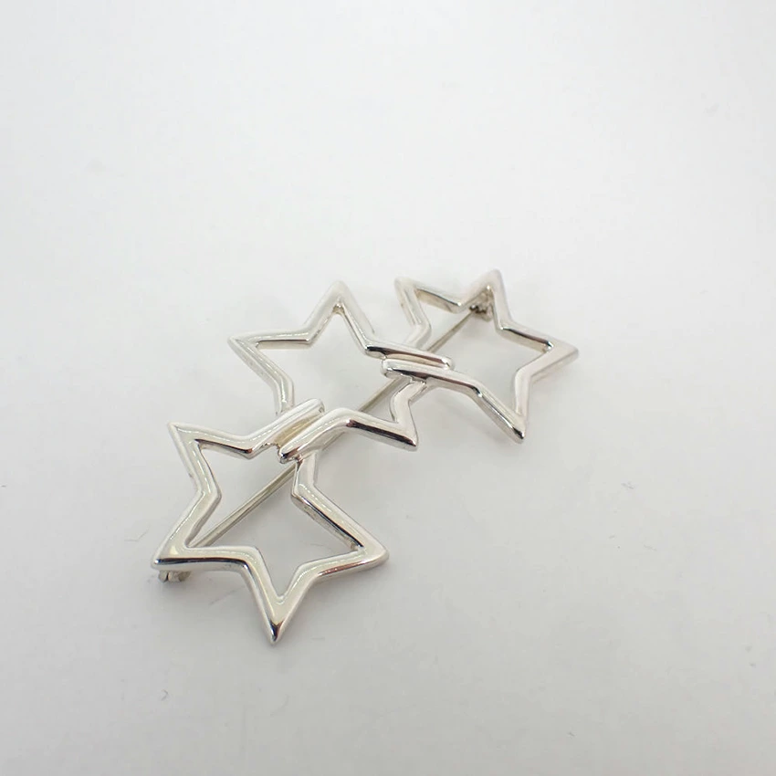 Product DetailsProduct Rank: A RankMaterial: Sterling Silver 925Weight: Approx. 7.9gSize: Approx. 29.3mm (height) x 53.2mm (width)Pin: Approx. 47.6mm (length)Product DetailsTriple Star Brooch / A brooch with a striking presence featuring dynamic and three-dimensional stars.Newly polished.Product Rank: [N] New or equivalent, in excellent condition with no defects [S] Almost no defects, in good condition [A] Minimal signs of use [B] Signs of use [C] Heavily used, with obvious stains and damage, requiring repair ____________________________Condition: Used