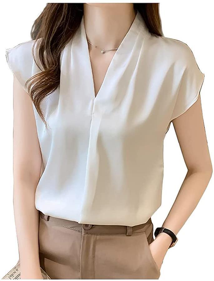 ・シンプルで上品なvネックブラウスになります。