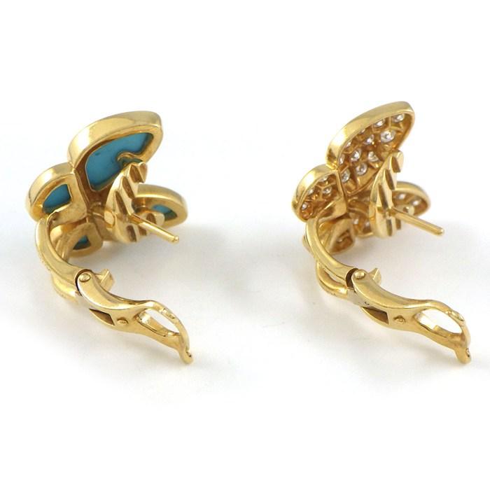 ■商品名Van Cleef & Arpels ピアス ドゥ パピヨン VCARP7US00 ターコイズ トルコ石 36ポイント ダイヤモンド 計0.99ct K18YG 【箱・保付き】 【中古】