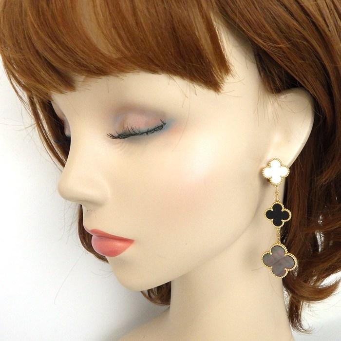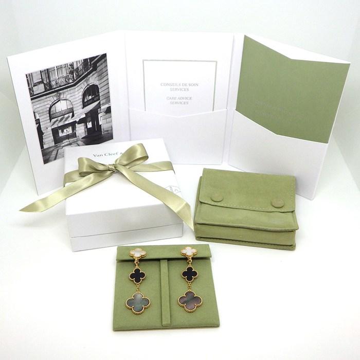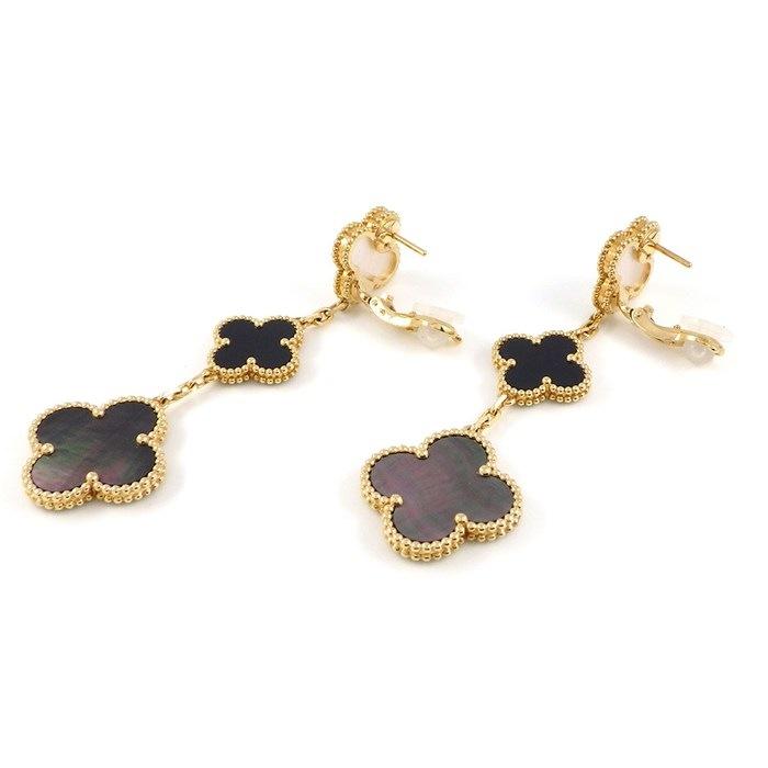 Van Cleef & Arpels ピアス マジックアルハブラ 3モチーフ VCARD79000 オニキス ホワイト / グレー シェル K18YG 【箱・保付き】 【中古】