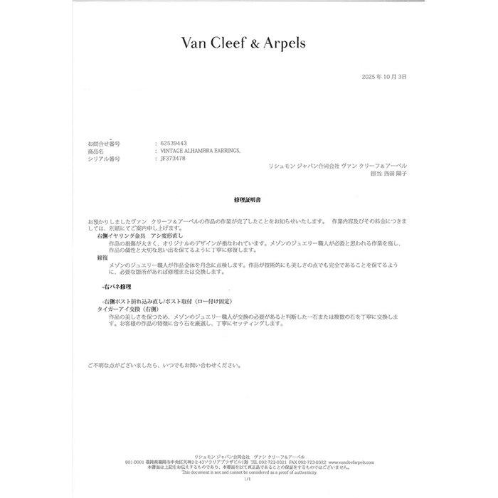 ■商品名Van Cleef & Arpels ピアス ヴィンテージアルハンブラ タイガーアイ K18YG ※片方のみ 【中古】