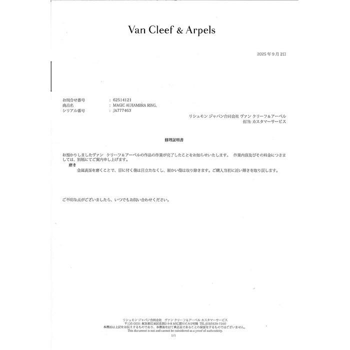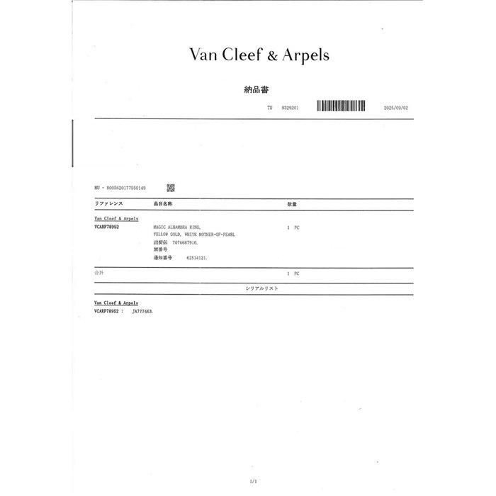 Van Cleef & Arpels リング マジックアルハンブラ VCARF78900 ホワイト シェル K18YG 11.5号 / #52 【中古】