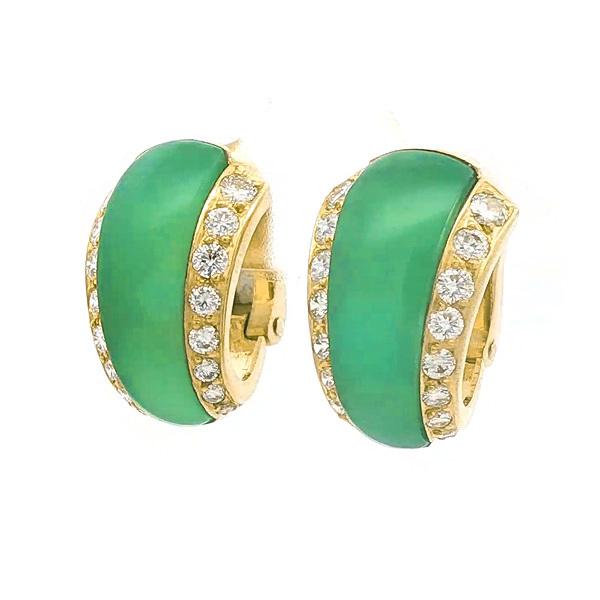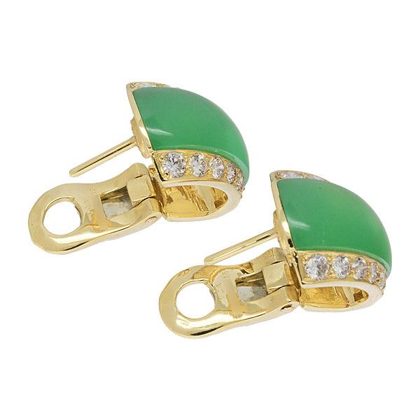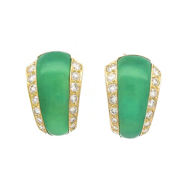 Van Cleef & Arpels Chrysoprase and Diamond Earrings in 18K Yellow Gold.
