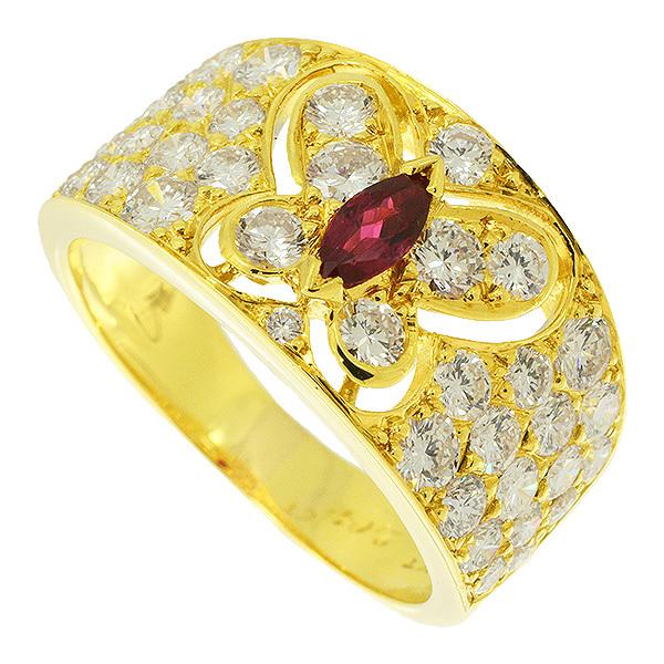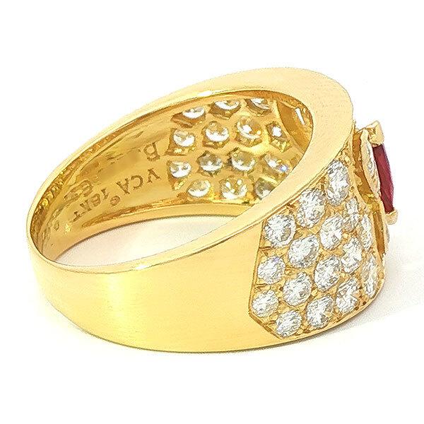 Category: JewelryType: RingBrand Name: Van Cleef & ArpelsSize: 14.5Design Width: 11.3mmGemstone: Ruby/DiamondStamp: VCA 18KT B5****** 2.04ctWeight: 6.0gMaterial: 18K Yellow GoldList Price: -Accessories: Original box and repair certificateCondition: A