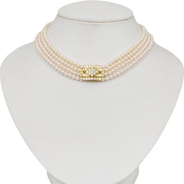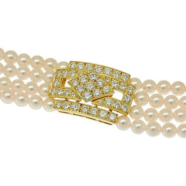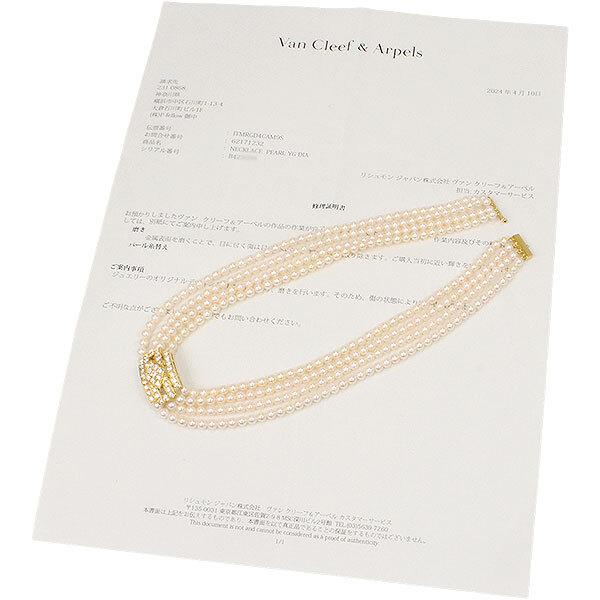 Van Cleef & Arpels Pearl and Diamond 4-Strand Necklace in 18K Yellow Gold.
