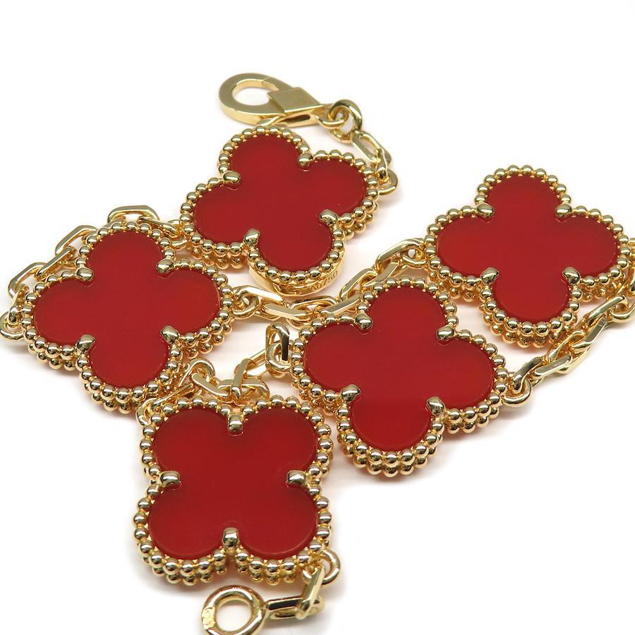 Product Rank: ACondition: This item is in excellent condition with almost no signs of use.The length was adjusted by the previous owner. (The removed chain is included.)While we have taken great care, this item was displayed in a store and may have minor scratches or blemishes.Please review the images and feel free to contact us with any questions.*The texture and color may appear different from the actual item depending on the shooting environment and your monitor settings.Brand: Van Cleef & ArpelsProduct Name: Vintage Alhambra Bracelet, 5 MotifsModel Number: VCARD35500Line:Serial No.: JP******Stamp: VCA Au750 JP******Size: Approx. 17.2cmInner Circumference: Approx. 15.0cm*Please note that measurements are taken manually and slight variations may occur.Weight (approx.): 11.0gMaterial: Au750PGCarnelianColor: Pink GoldMovementSuggested retail price: ¥852,500*As of November 2025SpecificationsAccessories: Box, dust bag, invoice, booklet, warranty card (August 2025/Japan), receipt*Personal information has been redacted.*Everything shown in the photo is included.