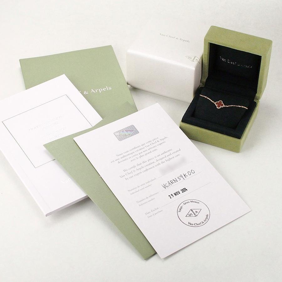 Brand: Van Cleef & ArpelsProduct Name: Sweet Alhambra Carnelian BraceletModel Number: VCARN59K00Size: Total Length: Approx. 17.8cm (including clasp)Circumference: Approx. 17.5cm (Adjuster: Approx. 1.5cm)Chain Width: Approx. 1mm (excluding clasp)Motif: Approx. 9 x 9mmWeight: 1.7gMaterial: 18K GoldStamp: VCA Au750 Serial NumberSuggested Retail Price: NoneAccessories: Inner box, outer box, certificate of authenticity (November 2024)Rank: SACondition/Notes: PolishedIf you have any questions about this item, please contact us via the Q&A form.If the stone size is not specified, it is considered an unknown size due to the lack of engraving.