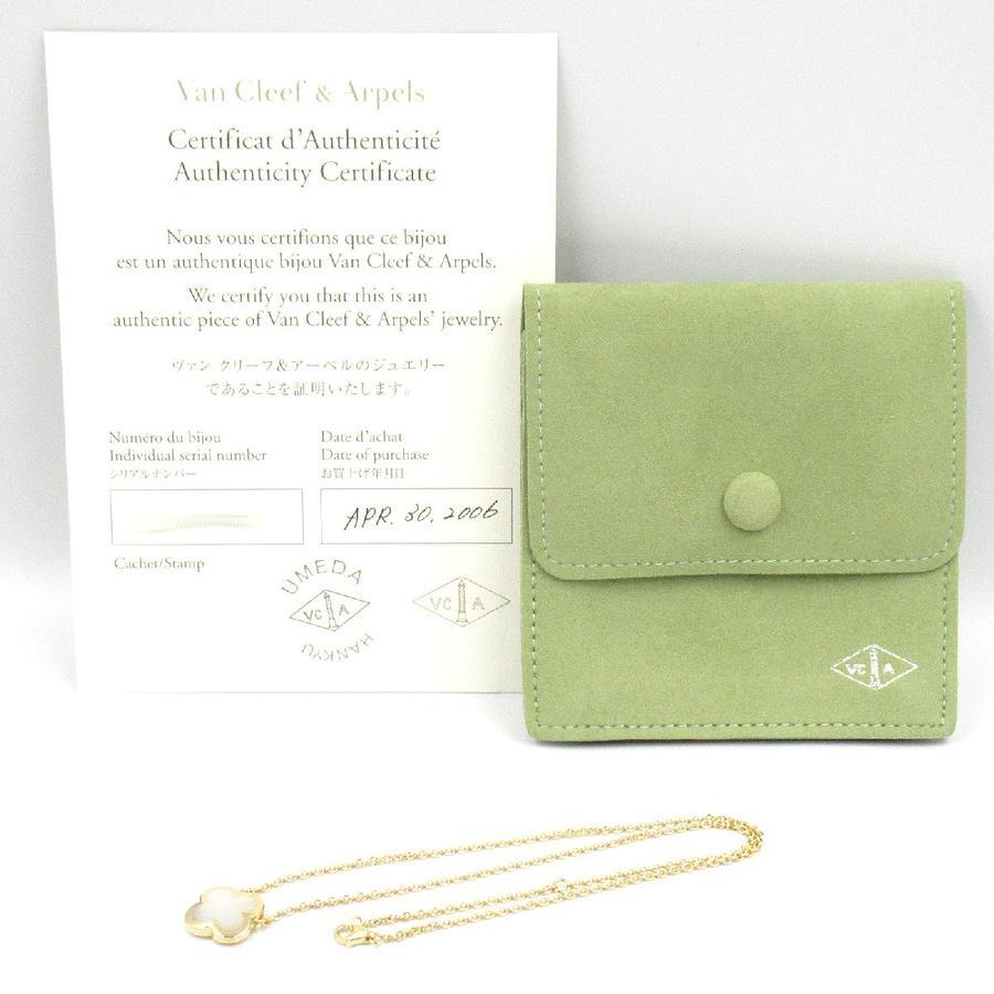 Condition: ASlight signs of wear, scratches, scuffs, and stains are visible.Slight signs of wear are visible. While the item has been polished, minor scratches may remain. Please note.Brand: Van Cleef & ArpelsProduct Name: Pure Alhambra Mother-of-Pearl NecklaceColor: WhiteMaterial: 18K Yellow Gold Mother-of-PearlSize: Neck Circumference: Approx. 37/41.5cmMotif Width: Approx. 15.7mm x Height: Approx. 15.7mm [Including the setting and bail]Weight: Approx. 8.4gSpecifications: -Accessories: Dust bag, guarantee cardItems not listed in the accessories column are not included.Items such as the outer box, dust bag, and warranty card are not included in the product ranking.Note: For privacy reasons, the individual serial number is not displayed. Although the item is actually engraved, please note that the color displayed on your screen may differ from the actual color depending on your display environment and settings.