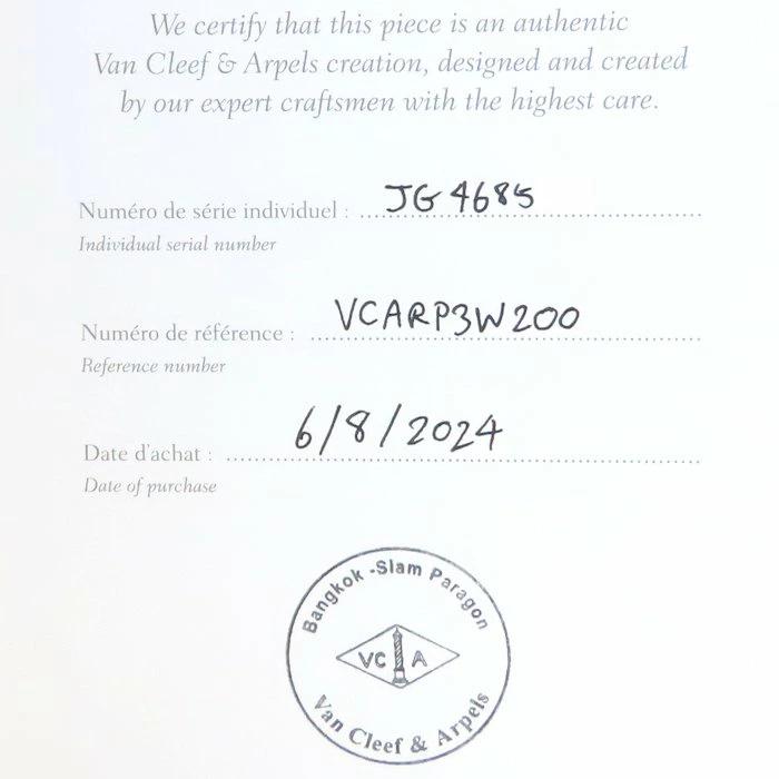 | 商品説明 | | 取扱店舗 | 銀座店 (TEL03-6264-4880) | | 状態 | 中古Aランク | | 型番 | VCARP3W200 | | 素材 | K18WG ホワイトゴールド | | サイズ | 16・17.5cm [トップ]縦10.6mm x 横11.5mm
