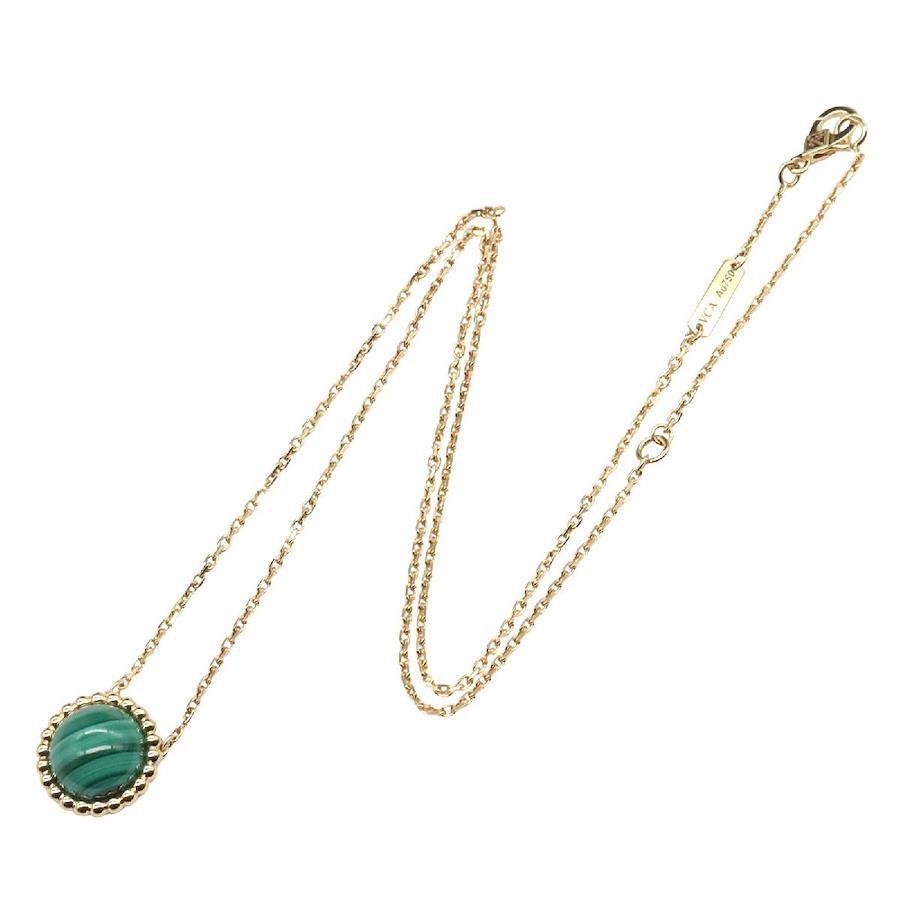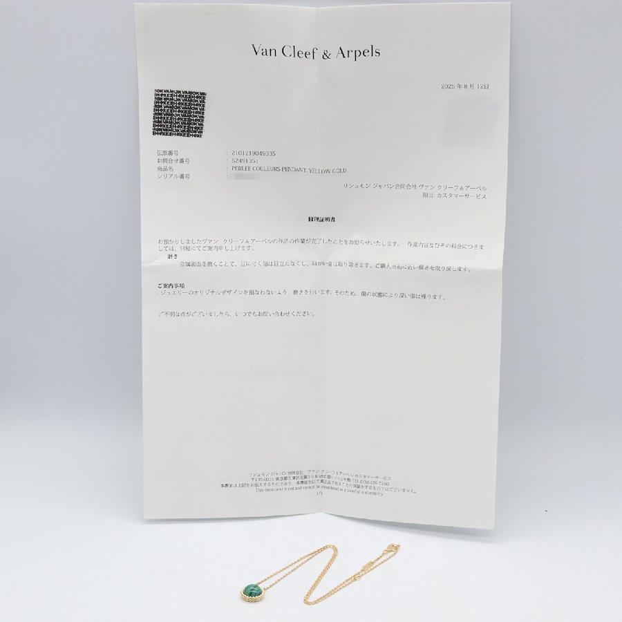 Condition: ASlight signs of wear, scratches, scuffs, and stains are visible.Slight signs of wear are visible. *This item has been polished, but minor scratches may remain. Thank you for your understanding.Brand: Van Cleef & ArpelsProduct Name: Perle Creules Malachite NecklaceColor: GreenMaterial: Malachite in 18K (yellow gold) and MalachiteSize: Neck circumference: Approx. 38/42.5cmMotif width: Approx. 13mm x height: Approx. 13mm [including setting and bail]Weight: Approx. 7.6gSpecifications: -Accessories: Repair certificate*Items not listed in the accessories section are not included as a general rule.*If an outer box, dust bag, warranty card, etc. are included, their condition is not included in the product rating.Note: The individual manufacturing number (serial number) is not displayed for privacy reasons. Although the item is actually engraved, please note that the color displayed on your screen may differ from the actual color depending on your display environment and settings.