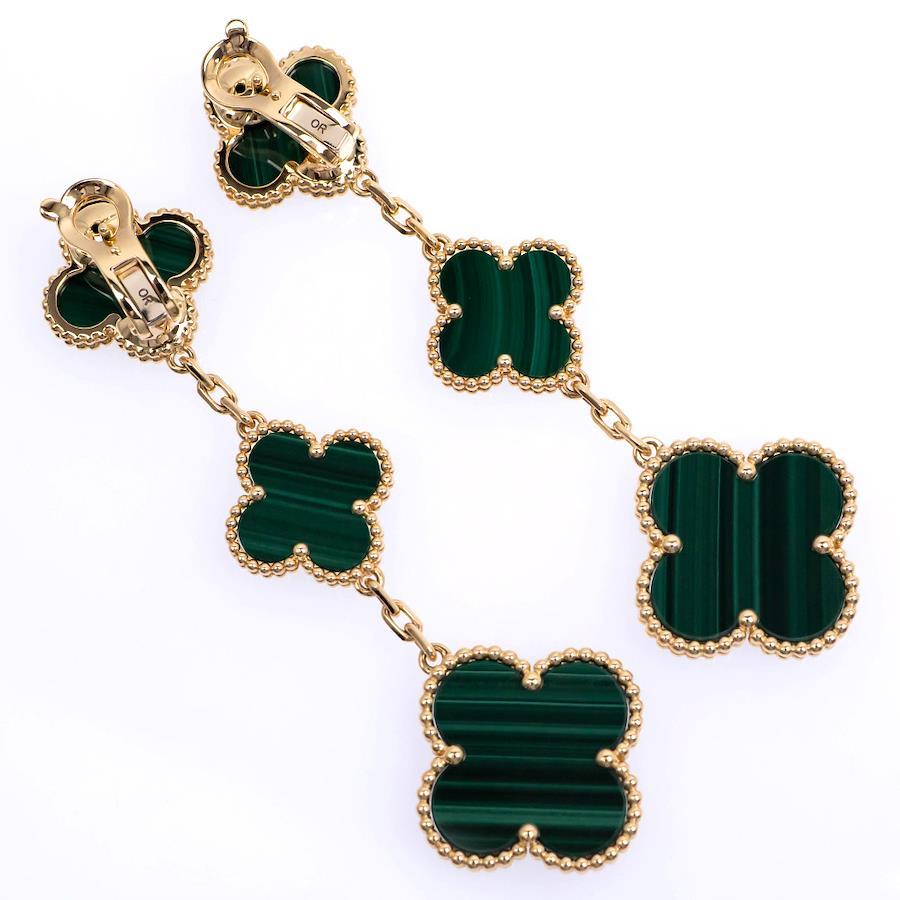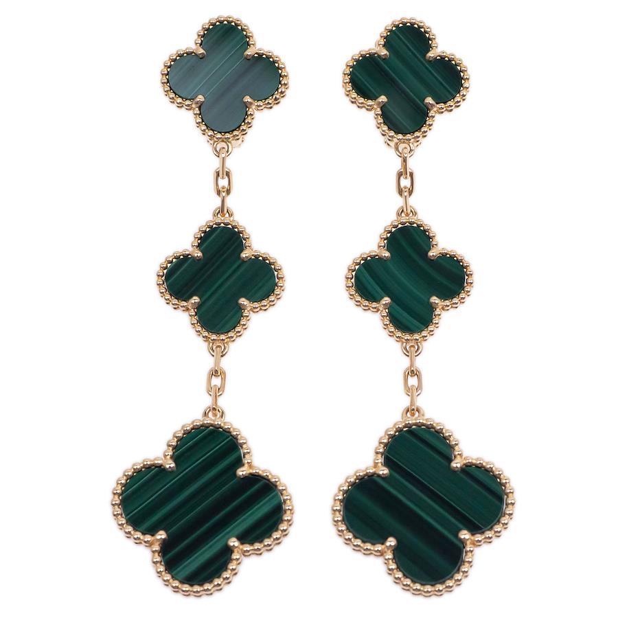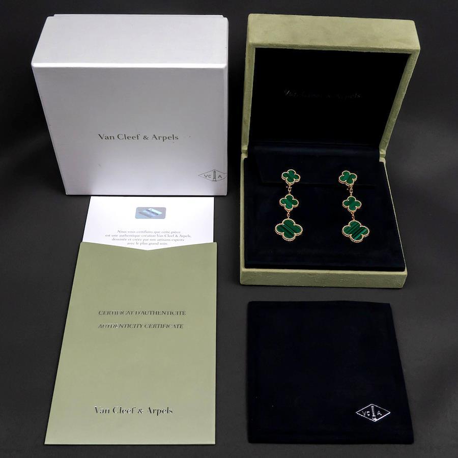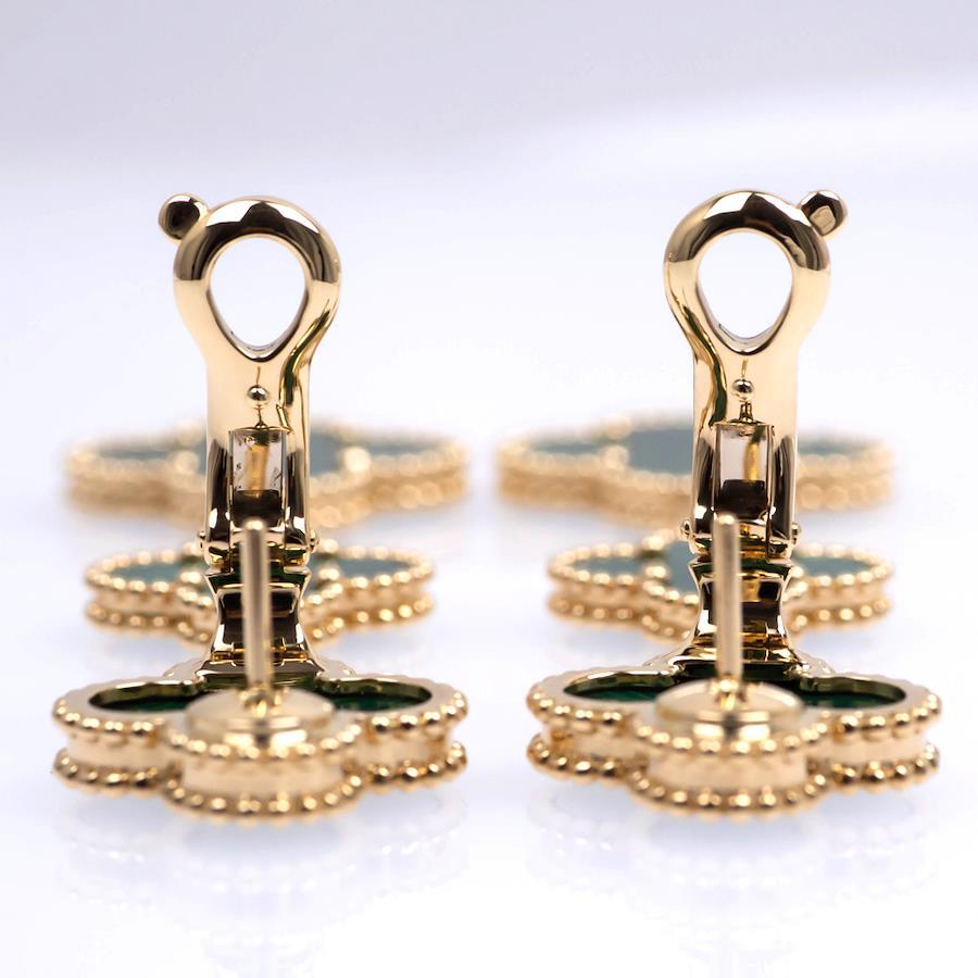 Van Cleef & Arpels Magic Alhambra 3-Motif Earrings VCARO2AG00 750YG 18K Malachite