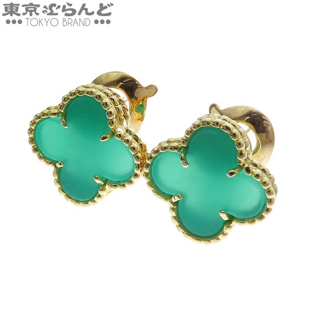 Van Cleef & Arpels Vintage Alhambra Earrings, 18K Yellow Gold with Green Agate, Polished