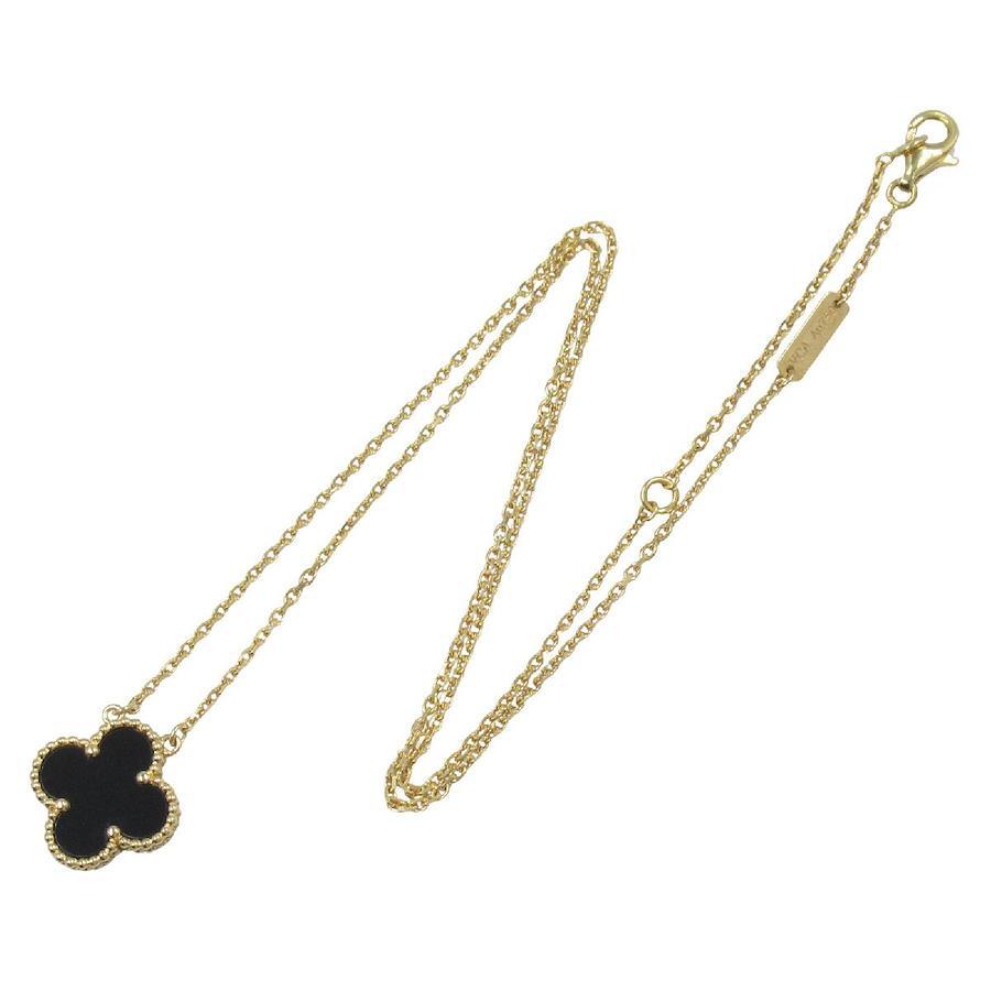 Condition: ASlight signs of wear, scratches, scuffs, and stains are visible.Slight signs of wear are visible. *This item has been polished, but minor scratches may remain. Please note.Brand: Van Cleef & ArpelsProduct Name: Vintage Alhambra Necklace, OnyxColor: BlackMaterial: Onyx, 18K Yellow Gold x OnyxSize: Neck Circumference: Approx. 37.5/42cmMotif Width: Approx. 14.8mm x Height: Approx. 14.8mm [Including setting, bail, etc.]Weight: Approx. 5.2gSpecifications: -Accessories Not IncludedItems not listed in the accessories column are not included.If an outer box, dust bag, warranty card, etc. are included, their condition is not included in the product rating.Note: For privacy reasons, the individual serial number is not displayed. Although the item is actually engraved, please note that the color displayed on your screen may differ from the actual color depending on your display environment and settings.