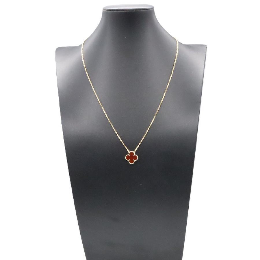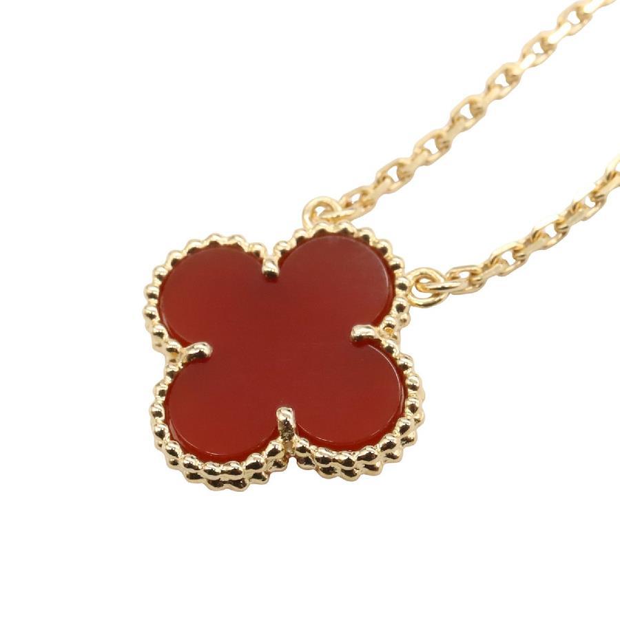 Condition: ASlight signs of wear, scratches, scuffs, and stains.Slight signs of wear. *This item has been polished, but minor scratches may remain. Please note.Brand: Van Cleef & ArpelsProduct Name: Vintage Alhambra Necklace, CarnelianColor: RedMaterial: Carnelian, 18K Yellow Gold x CarnelianSize: Neck Circumference: Approx. 42.5/47cmMotif Width: Approx. 15mm x Height: Approx. 15mm [Including the setting and bail]Weight: Approx. 5.4gSpecifications: -Accessories Not IncludedItems not listed in the accessories column are not included.Items such as the outer box, dust bag, and warranty card are not included in the product ranking.Note: For privacy reasons, the individual serial number is not displayed. Although the item is actually engraved, please note that the color displayed on your screen may differ from the actual color depending on your display environment and settings.