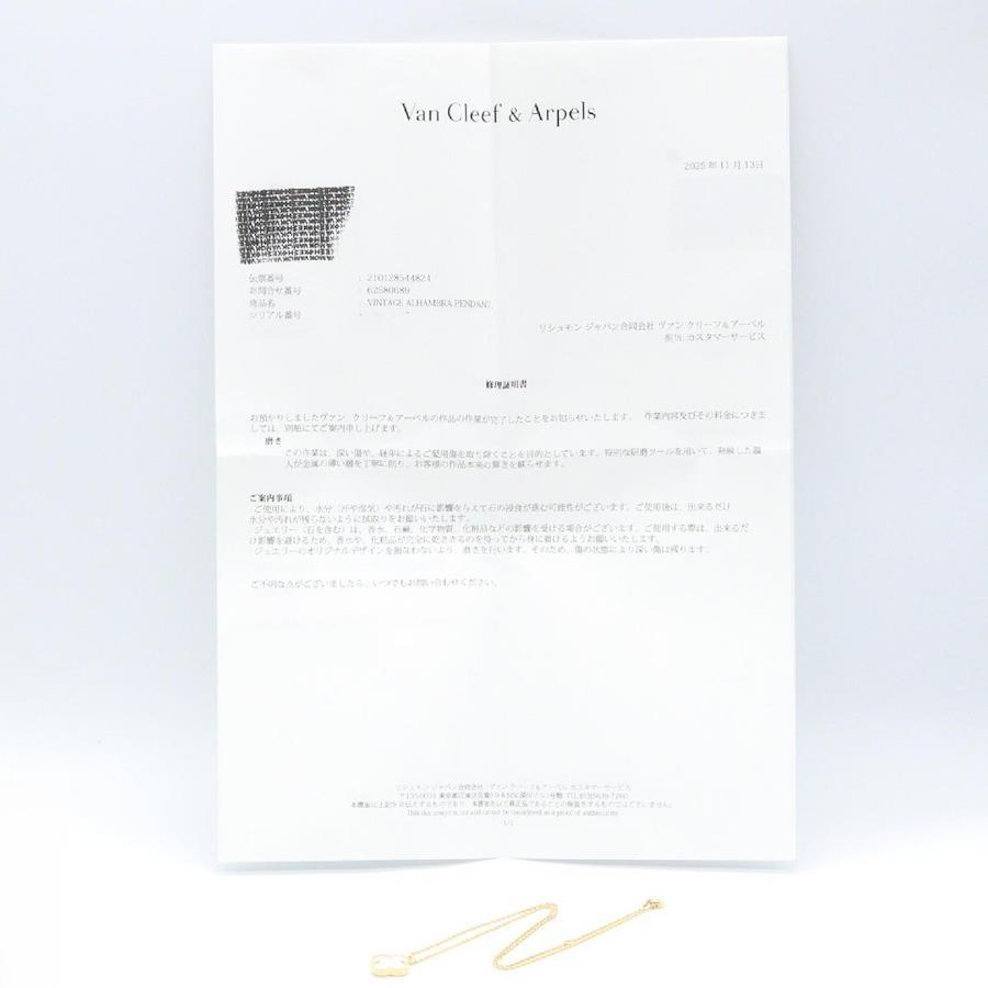 Condition: ASlight signs of wear, scratches, scuffs, and dirt are visible.Brand: Van Cleef & ArpelsProduct Name: Vintage Alhambra Mother-of-Pearl NecklaceModel Number: VCARA45900Color: Gold/WhiteMaterial: 18K (Yellow Gold) x Mother-of-PearlSize: Neck Circumference: Approx. 37-42cmMotif Width: Approx. 15mm x Height: Approx. 15mm [Including the setting and bail]Weight: Approx. 5.1gSpecifications: -Accessories: Repair Certificate*Items not listed in the accessories section are not included as a general rule.*If an outer box, dust bag, warranty card, etc. are included, their condition is not included in the product rating.Note: Slight signs of wear are visible. *This item has been polished, but minor scratches may remain. Please note.Individual manufacturing numbers (serial numbers) are not displayed for privacy reasons. The item is actually engraved.Please note that the color displayed on your screen may differ from the actual color depending on your display environment and settings.