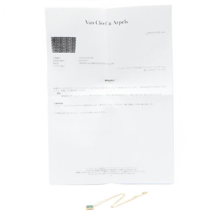 Condition: ASlight signs of wear, scratches, scuffs, and dirt.Brand: Van Cleef & ArpelsProduct Name: Vintage Alhambra Malachite NecklaceModel Number: VCARO3QL00Color: Gold/GreenMaterial: 18K (Yellow Gold) x MalachiteSize: Neck Circumference: Approx. 37-41.5cmChain Length: Approx. 37-41.5cmTop: Approx. 15mm W x 15mm HMotif Width: Approx. 15mm x Height: Approx. 15mm [Including the frame and bail]Weight: Approx. 5.3gSpecifications: NoneAccessories: Repair Certificate*Items not listed in the accessories column are not included.*If an outer box, dust bag, warranty card, etc. are included, their condition is not included in the product ranking.Notes: There are some signs of use. *This item has been polished, but there may be small scratches that cannot be removed. Please be aware of this.Individual manufacturing numbers (serial numbers) are not displayed to protect personal information. They are actually engraved.Other: Depending on the display environment and settings, the colors displayed on your screen may differ from the actual colors. Please be aware of this.