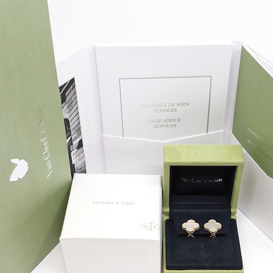 Van Cleef & Arpels 18K Yellow Gold Vintage Alhambra Earrings, White Shell and Mother-of-Pearl MOP VCARA44100 750YG