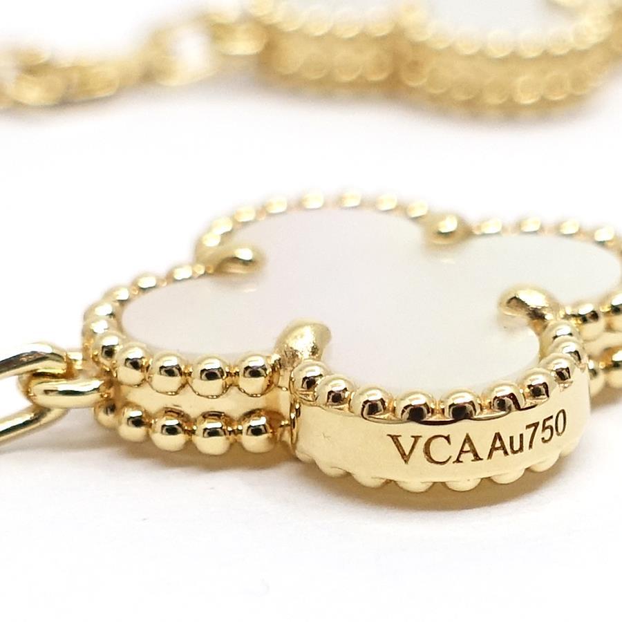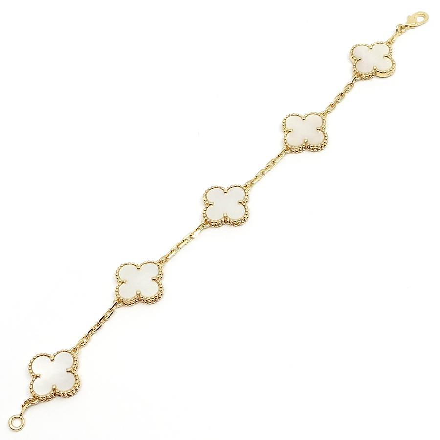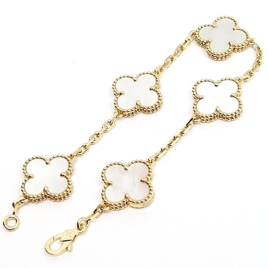 Van Cleef & Arpels 18K Yellow Gold Vintage Alhambra Bracelet with White Shell and Mother-of-Pearl Motifs (750YG)