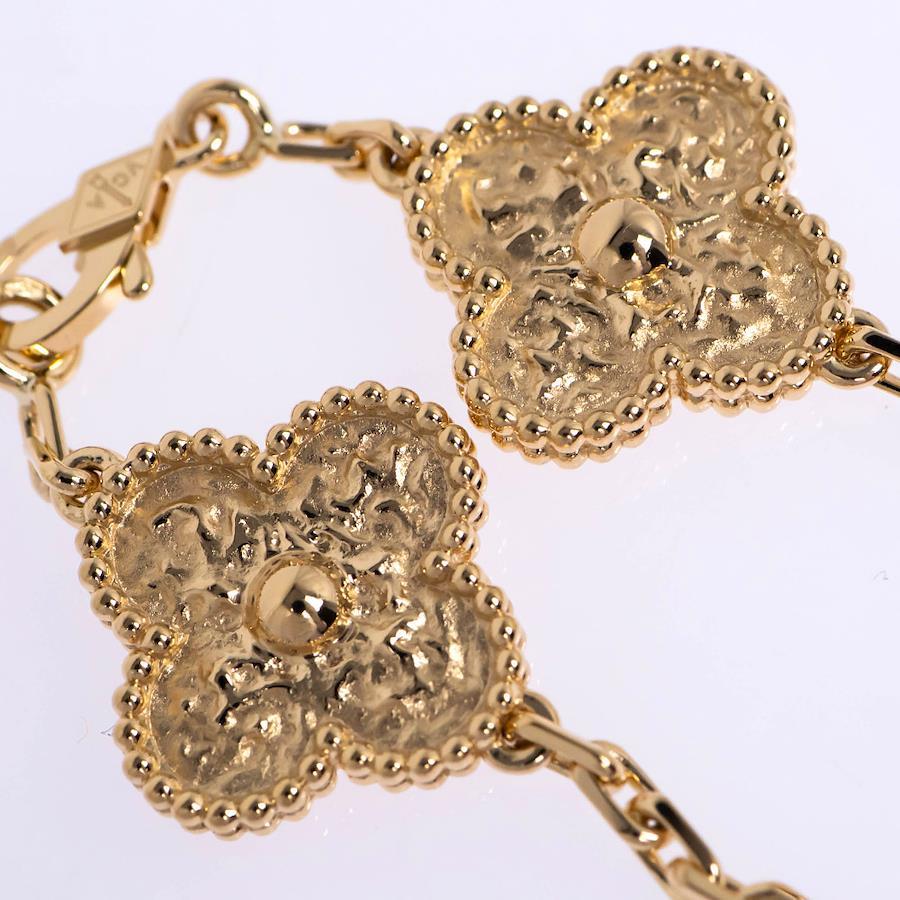 Item Rank: AItem Condition: This item has been polished at our designated jewelry workshop.Light polishing was used to maintain the proportions of the item. While there may be some minor scratches that cannot be removed, the overall finish is beautiful.Please refer to the images to determine the condition, but please feel free to ask any questions or contact us with any concerns.*While we handle this item with the utmost care, it is a display item in our store, so there may be very slight scratches or scuffs.*The texture and color may appear different from the actual item depending on the shooting environment and your monitor settings.Brand: VAN CLEEF & ARPELSProduct Name: Vintage Alhambra Bracelet, 5 MotifsModel Number: VCARO1IE00Serial No.: JP******Stamp: VCA Au750 / JP****** / HallmarkMaterial: 750YG 18K Yellow GoldStone:Color: GoldSize: Length (approx.): 19cmMotif: (approx.): W15mm x H15mmWeight: (approx.): 15.8gSuggested Retail Price:Accessories: Original case (inner and outer boxes)Warranty (2025 / stamped by authorized international retailer)*All items shown in the images are included.