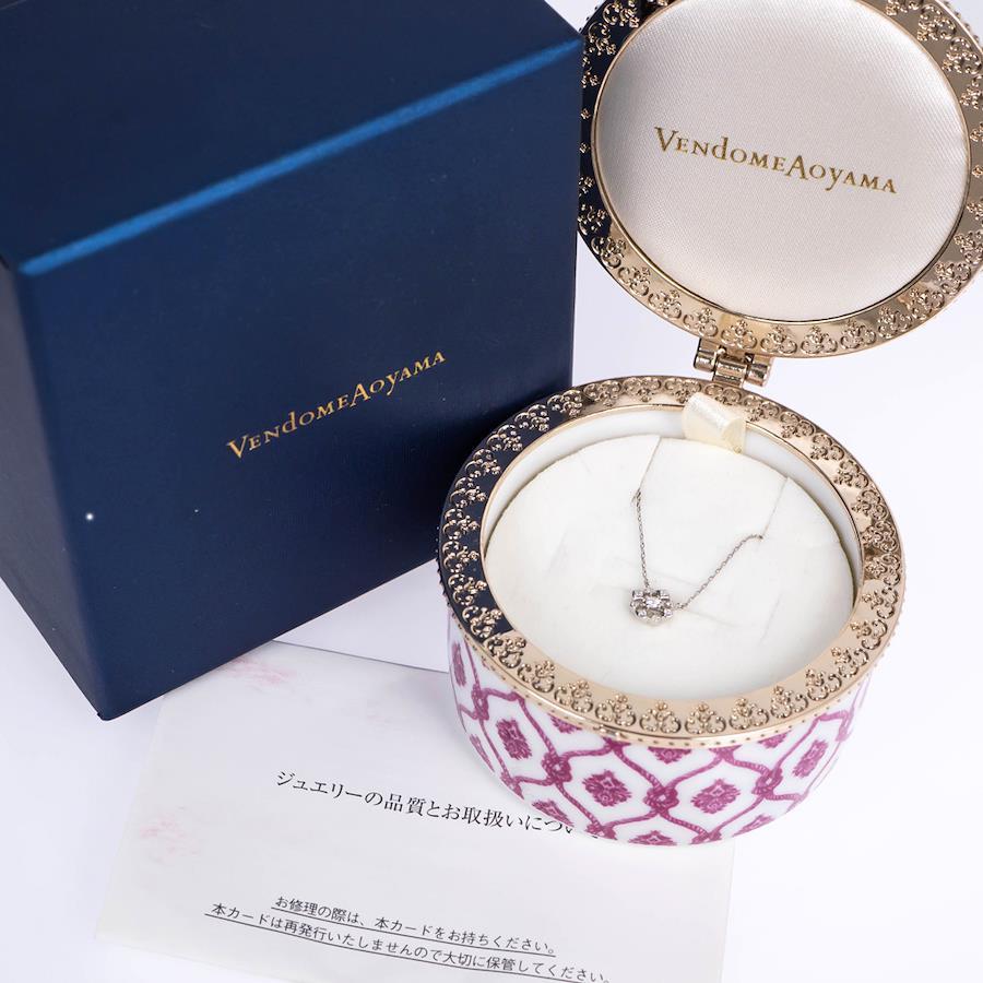 Product Rank: ABCondition: This is a used item.Some signs of wear and minor scratches are visible, but there is no noticeable damage.Ultrasonic cleaning has been completed.Please refer to the images to determine the condition, but please feel free to ask any questions or contact us with any concerns.*While we handle this item with the utmost care, it is a display item in our store, so there may be very slight scratches or scuffs.*The texture and color may appear different from the actual product depending on the shooting environment and your monitor settings.Brand: VENDOME AOYAMAProduct Name: Holiday Collection 2022 NecklaceModel Number: AVPN206940DISerial No.:Stamp: Pt850 / Pt950 / [Brand Mark]Material: Pt850 / Pt950 PlatinumStone: DiamondColor: SilverSize: Chain: 45cm / 36cmMotif: (approx.) H7.0mm x W7.0mmWeight: (approx.) 1.3gSuggested Retail Price: ¥66,000 (tax included)Accessories: Genuine caseWarranty card (dated November 2022)