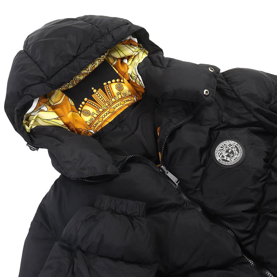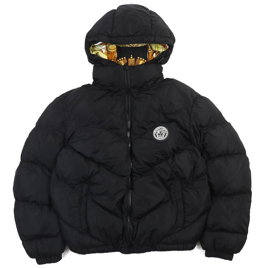 VERSACE Medusa Patch Baroque Hooded Reversible Jacket, Black Nylon and Polyester, 1012270