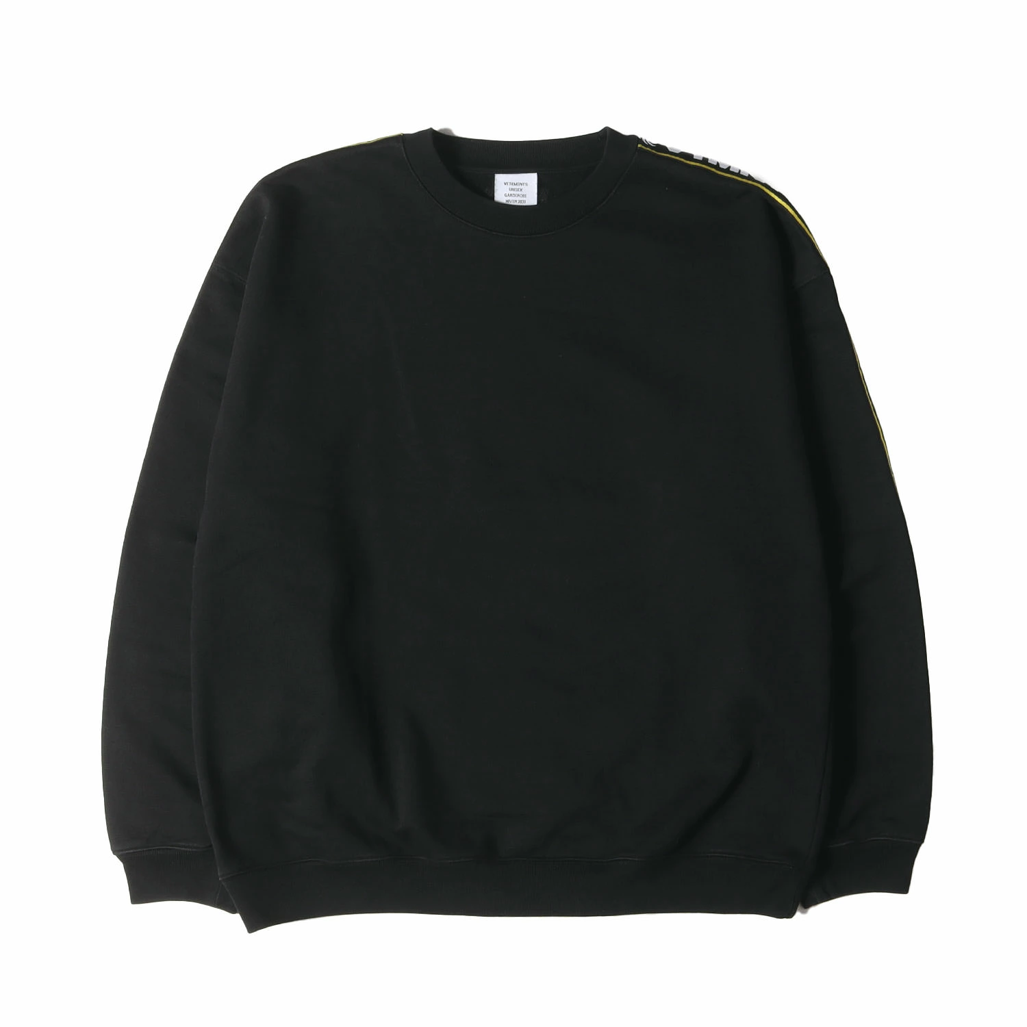 - 肩から袖にかけてブランドロゴテープをあしらったクルーネック裏毛スウェットです。ドロップショルダーのオーバーサイズシルエットで仕上げた一枚になります。