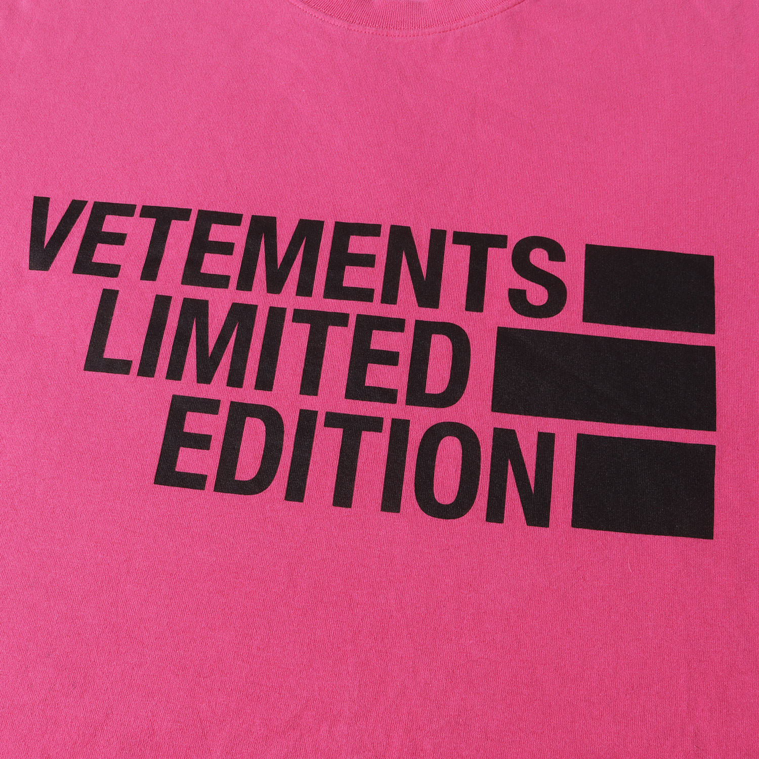 商品説明フロントにVETEMENTS LIMITED EDITIONとロゴプリントをデザインしています。得意とするオーバーサイズで仕上げています。首元のブランドロゴ刺繍もポイントです。