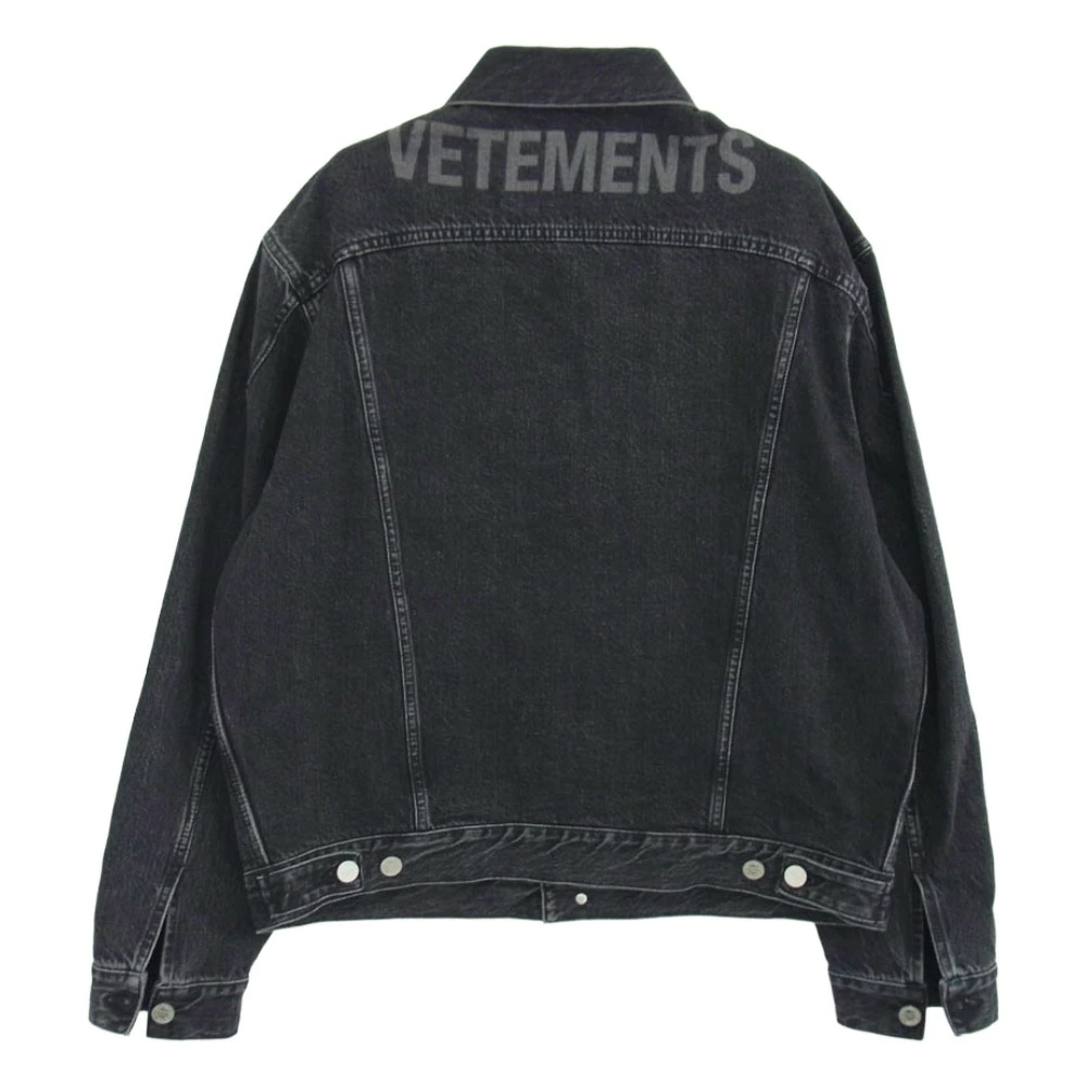 VETEMENTS UE51JA250B Back Logo Print Oversized Denim Trucker Jacket, Black, Size M, Men's [Used]