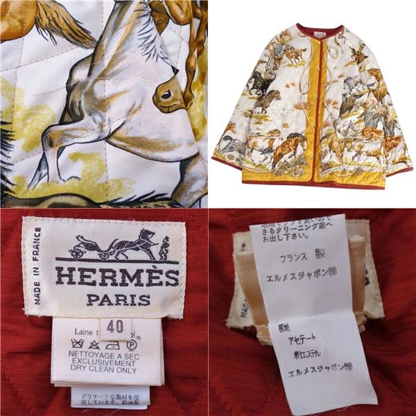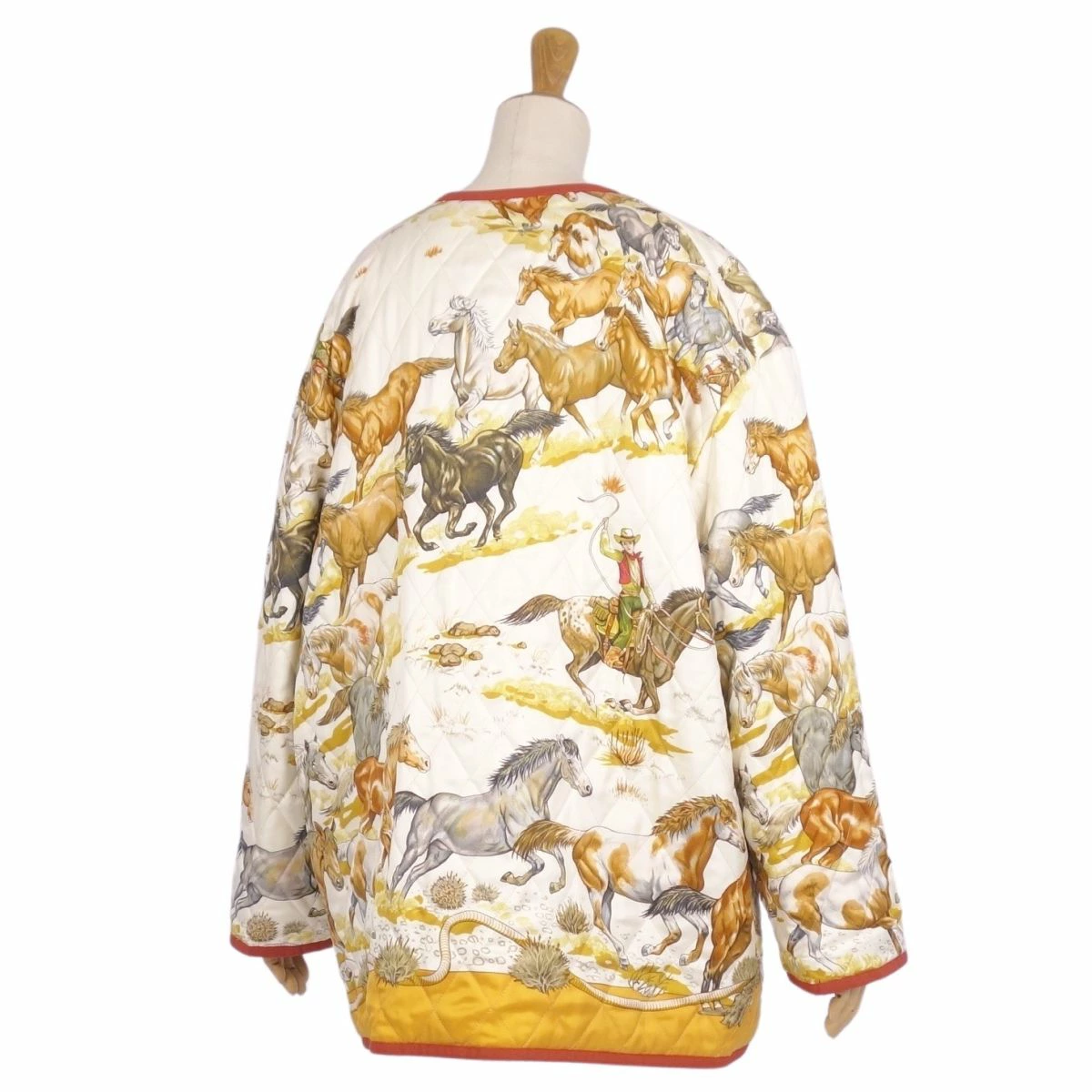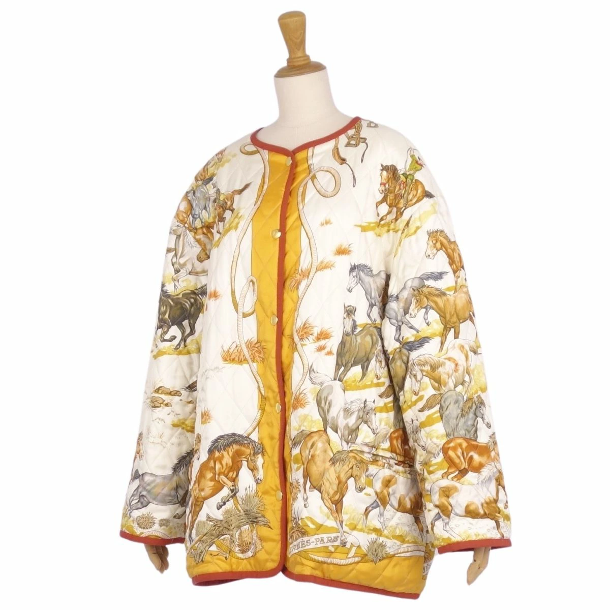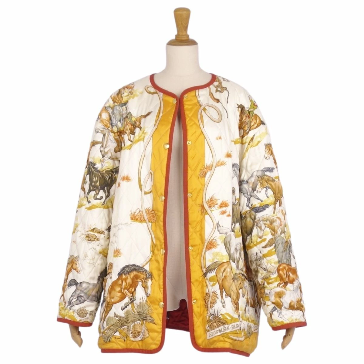 ■商品名Vintage エルメス HERMES ジャケット キルティング 中綿入り セリエボタン シルク100% 総柄 馬柄 ホース アウター レディース マルチカラー サイズ40(M相当)■状態説明・希少なVintage HERMES。上質なシルク素材を使用した中綿入りキルティングジャケットです♪・鮮やかなカラーリングと繊細なタッチで描かれた総柄模様が目を引くデザイン◎・フランス製・国内正規取扱品です。・数カ所汚れと袖に一箇所ステッチのほつれが御座いますが、ご使用に差し支えるようなものはなく全体的に良好な状態です!【季節感:秋冬】【付属品:なし】■素材表地:シルク100% 裏地:アセテート98% ポリエステル2% 中綿:ウール/ポリエステル■カラーマルチカラー■表記サイズ40(M相当)■実寸サイズ着丈:約72cm身幅:約62cm肩幅:約54cm袖丈:約53cm■状態ランクB 傷や汚れがあるが、まだまだ使用可能な状態■店舗管理番号ce06ol-rm10f13312womens_multi womens_m