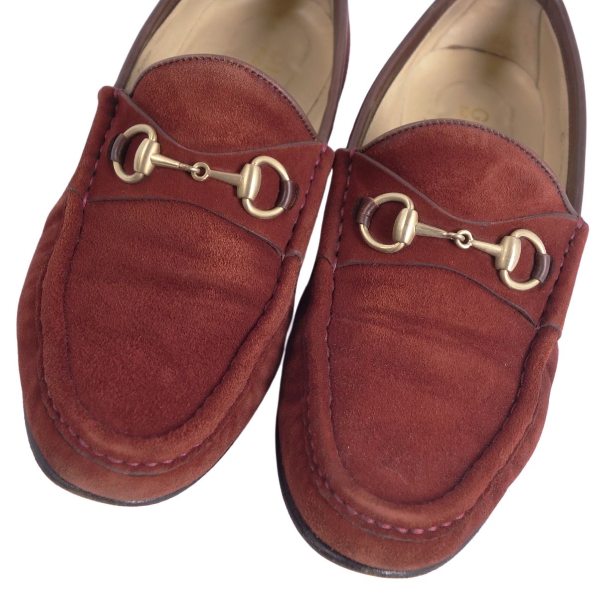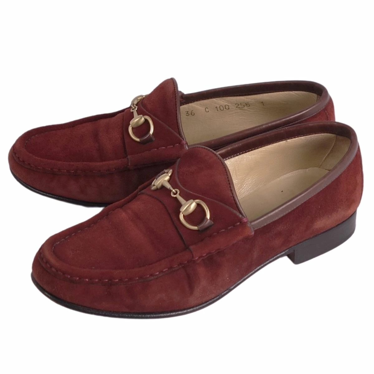 ■商品名Vintage グッチ GUCCI ローファー モカシン ホースビット スウェードレザー シューズ 靴 レディース イタリア製 ボルドー サイズ36C(23cm相当)■状態説明・希少なVintage GUCCI。上質なスウェードレザーを贅沢に使用した、ローファーです♪・ボルドーのカラーリングにアイコニックなホースビットデザインが目を引く一品です◎・イタリア製・スウェードレザー特有のスレやインソールに汚れが御座いますが、ご使用に差し支えるようなものはなくまだまだお使い頂ける状態です!【季節感:オールシーズン】【付属品:箱】■素材スウェードレザー■カラーボルドー■表記サイズ36C(23cm相当)■実寸サイズアウトソール:約23.5cm幅:約8.5cm■状態ランクAB 使用感があるが、傷や汚れの気にならない状態■店舗管理番号ce07ob-rm20e32491womens_red