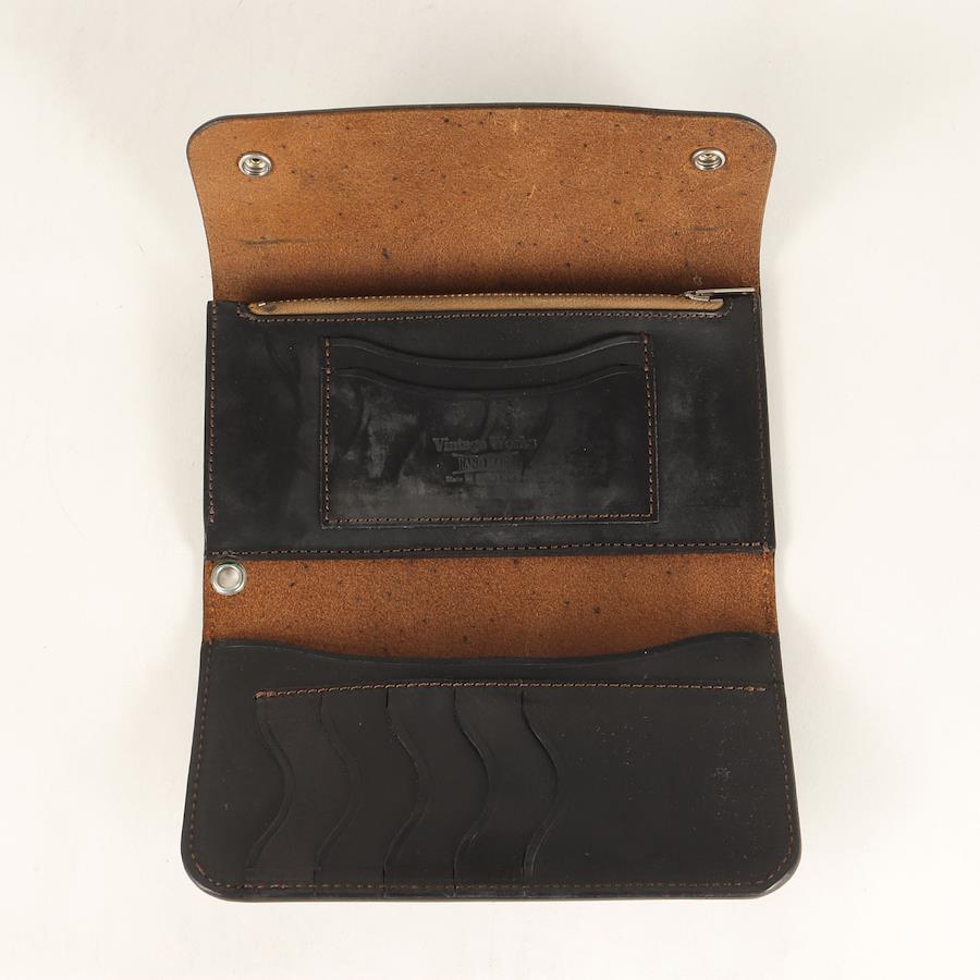 VintageWorks Chrome Excel Leather Long Wallet | Black | Made in Japan | Men's Designer Fashion Item | Pre-owned | K4641