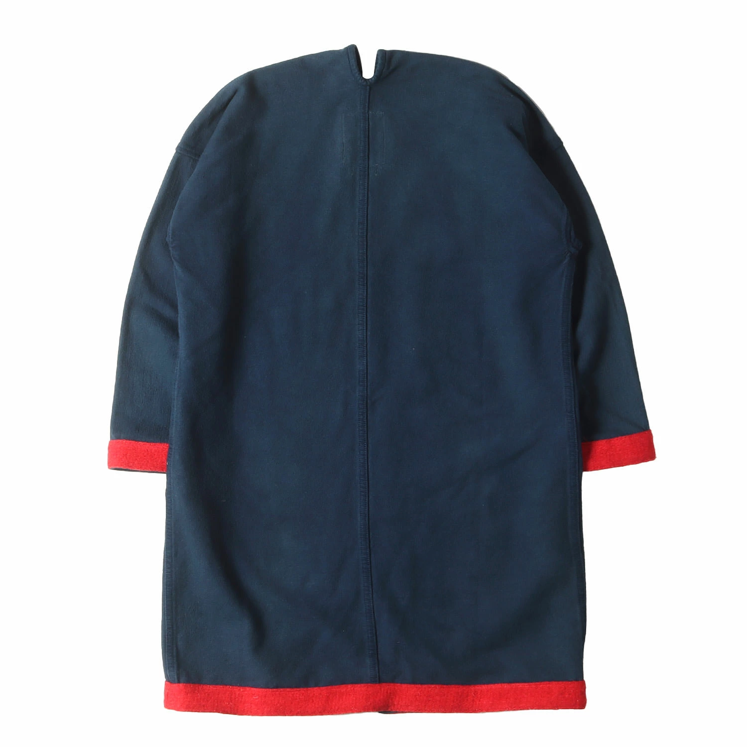 商品説明ブラッシングを施したフランネルコットン生地を使用したボタンレスコート、通称「SANJURO COAT」です。袖口と裾に取り入れた赤刺繍がアクセントになります。