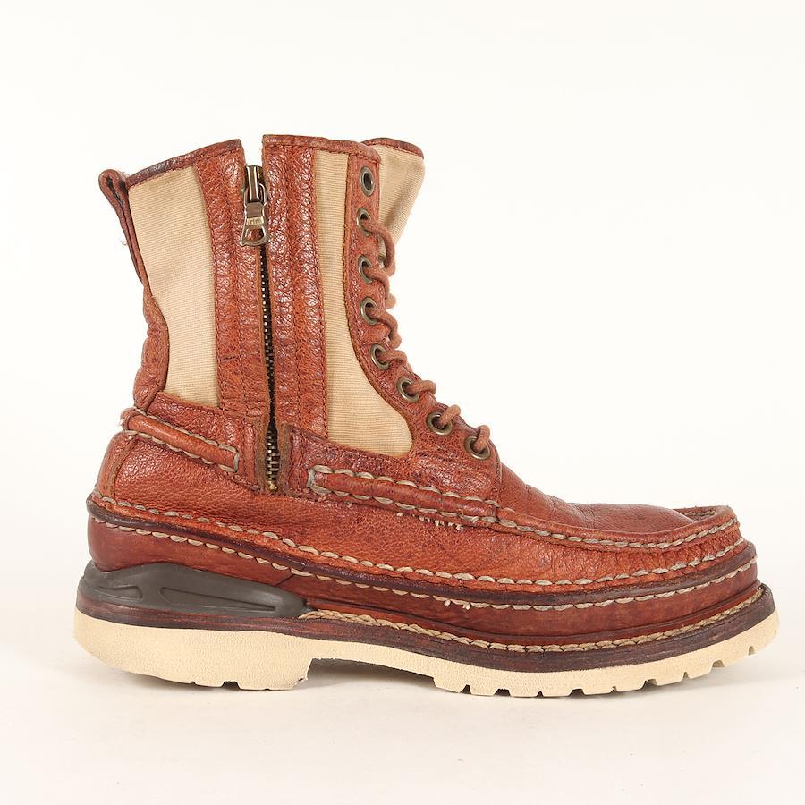 - こちらは人気の高い“GRIZZLY BOOTS”のF.I.L限定モデルです。アッパーは珍しいアンテロープレザーとイタリア製キャンバスのコンビで仕上げた一足になります。