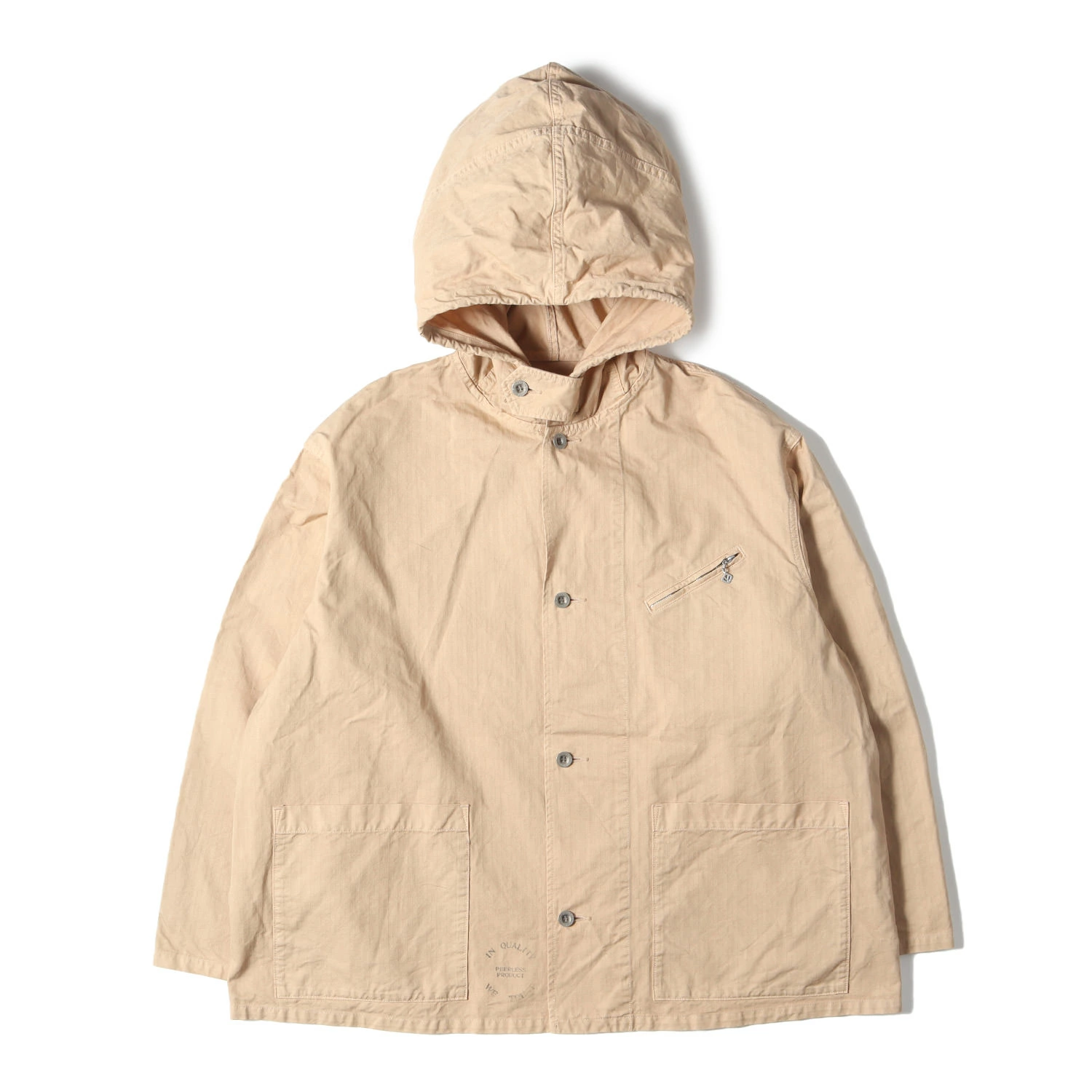 | 商品説明 | ハリのあるヘリンボーンツイル生地を使用したメタルボタンのフードジャケットです。身幅の広いルーズシルエットで仕上げた一枚になります。 |