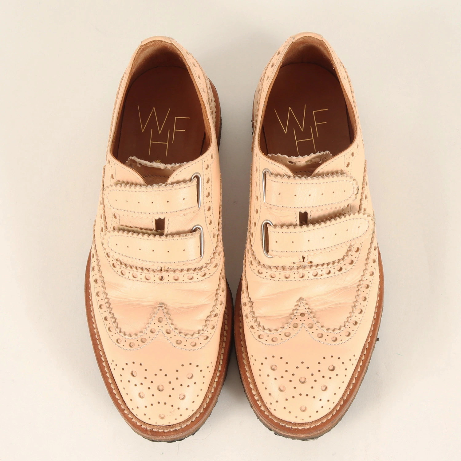 | 商品説明 | ・柔らかなレザー地 ・ウイングチップ ・メダリオンデザイン ・ベルクロ仕様のダブルモンクストラップ ・クレープソール |