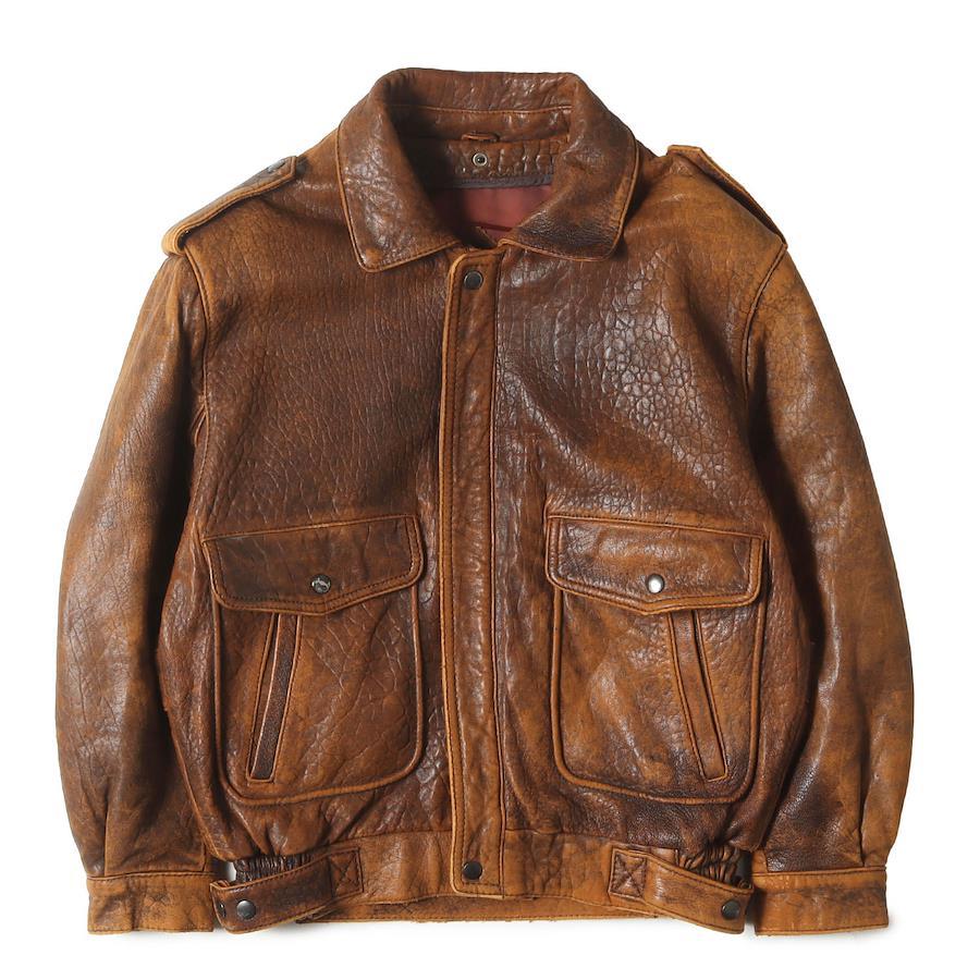WIND ARMOR Wind Armor Jacket, Brown, Size M | Exceptional Style | 90s Sheepskin Leather Full-Zip Flight Jacket | 90s Vintage Clothing | Men's Outerwear, Blouson Jacket [Pre-owned] [K4653]